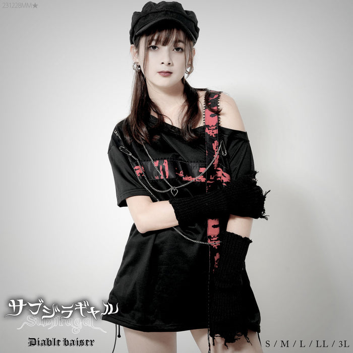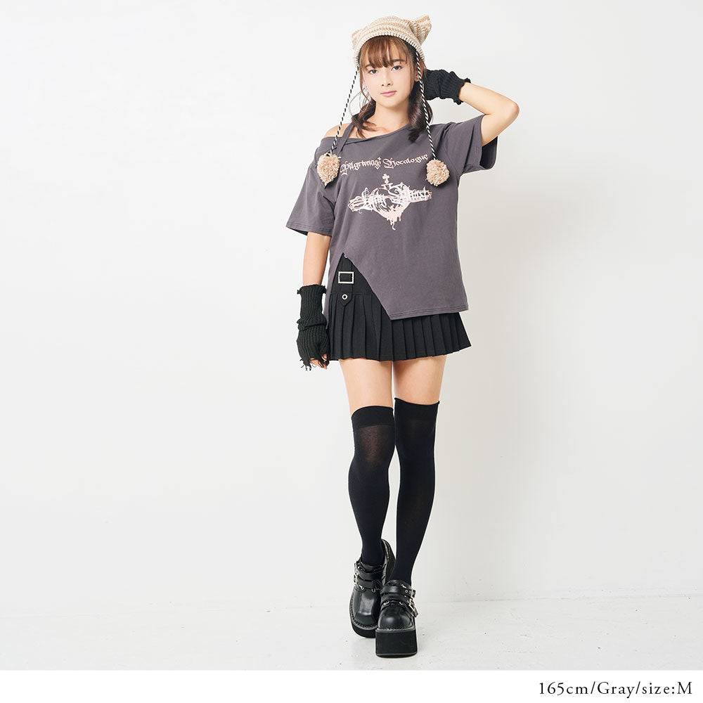 ▶ アシメショルダープリント半袖Tシャツ
