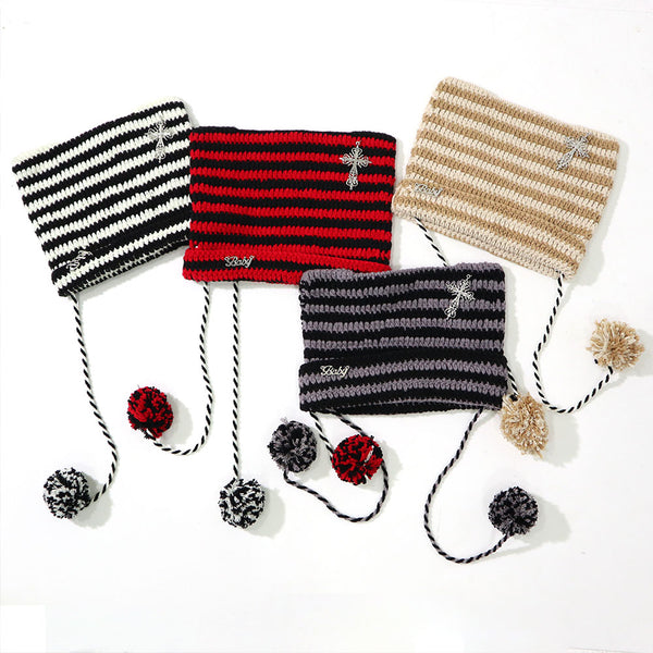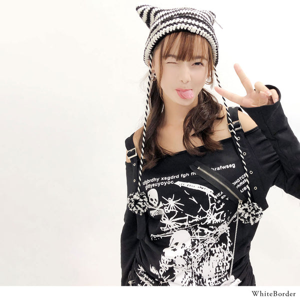 ▶ ポンポン付ねこ耳ボーダー編ニット帽