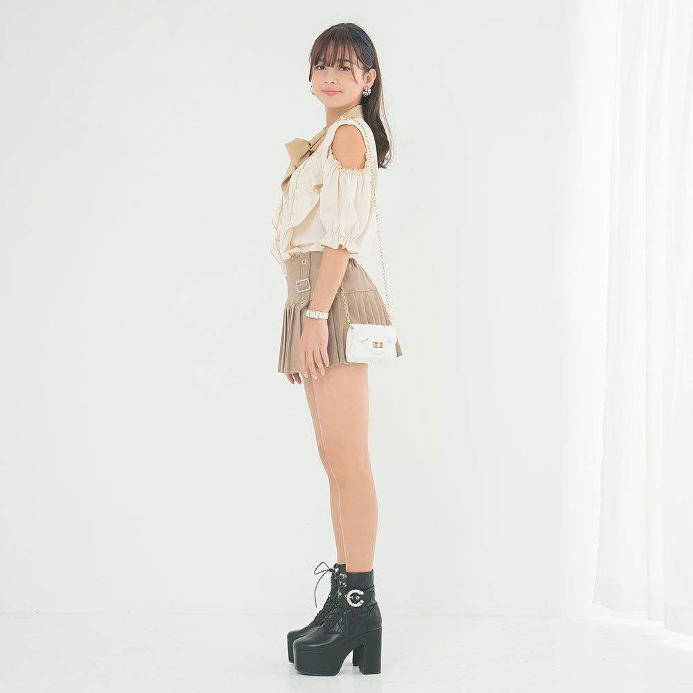 キラキラパーツが際立つプリーツスカート