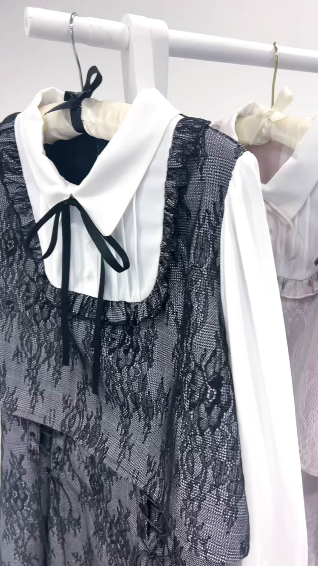ヨークフリルや付属リボン、袖口のたっぷりフリルが可憐で、まるでお嬢様のようなクラシカルな雰囲気に。