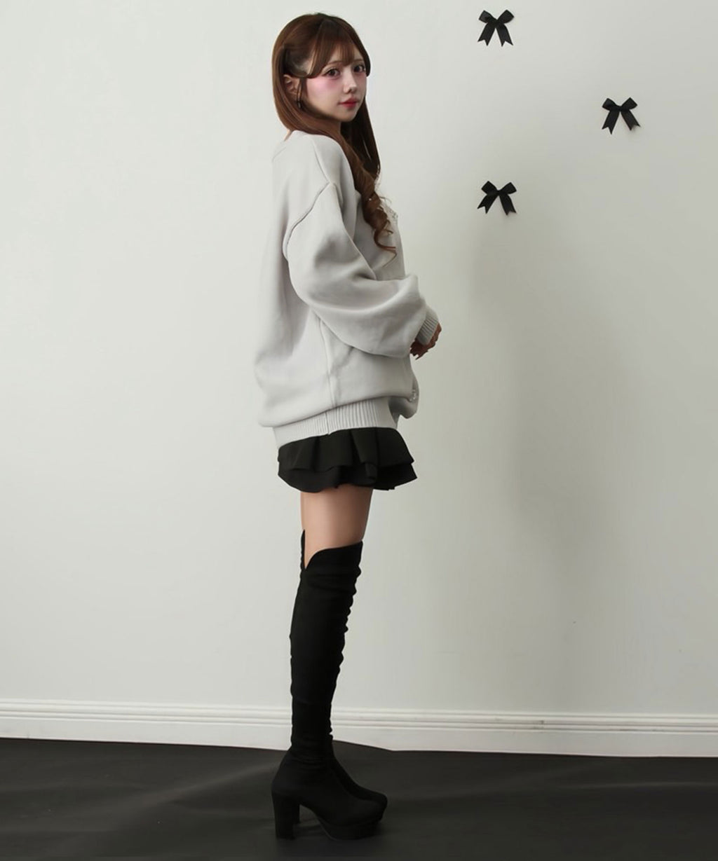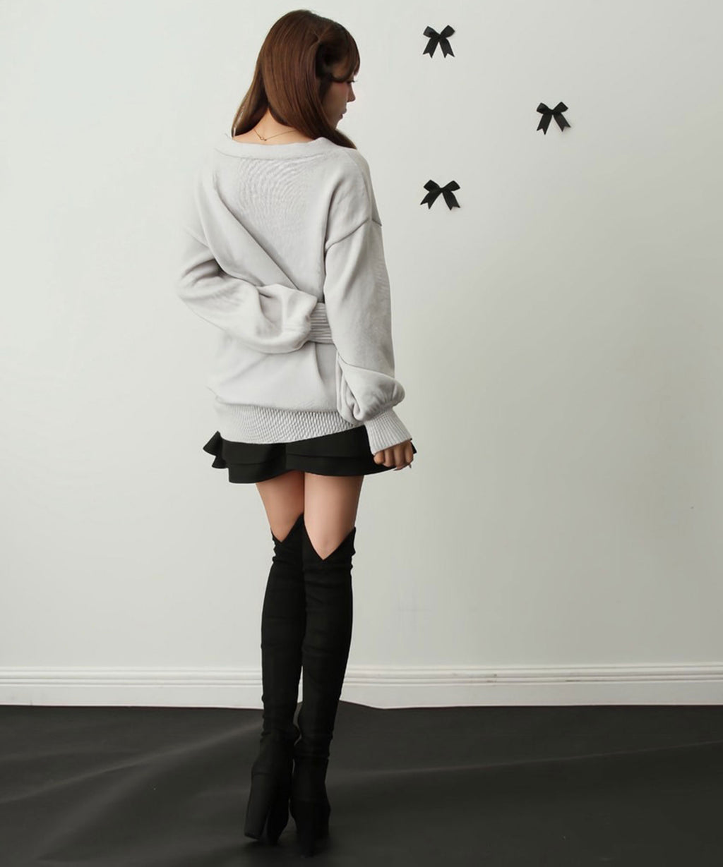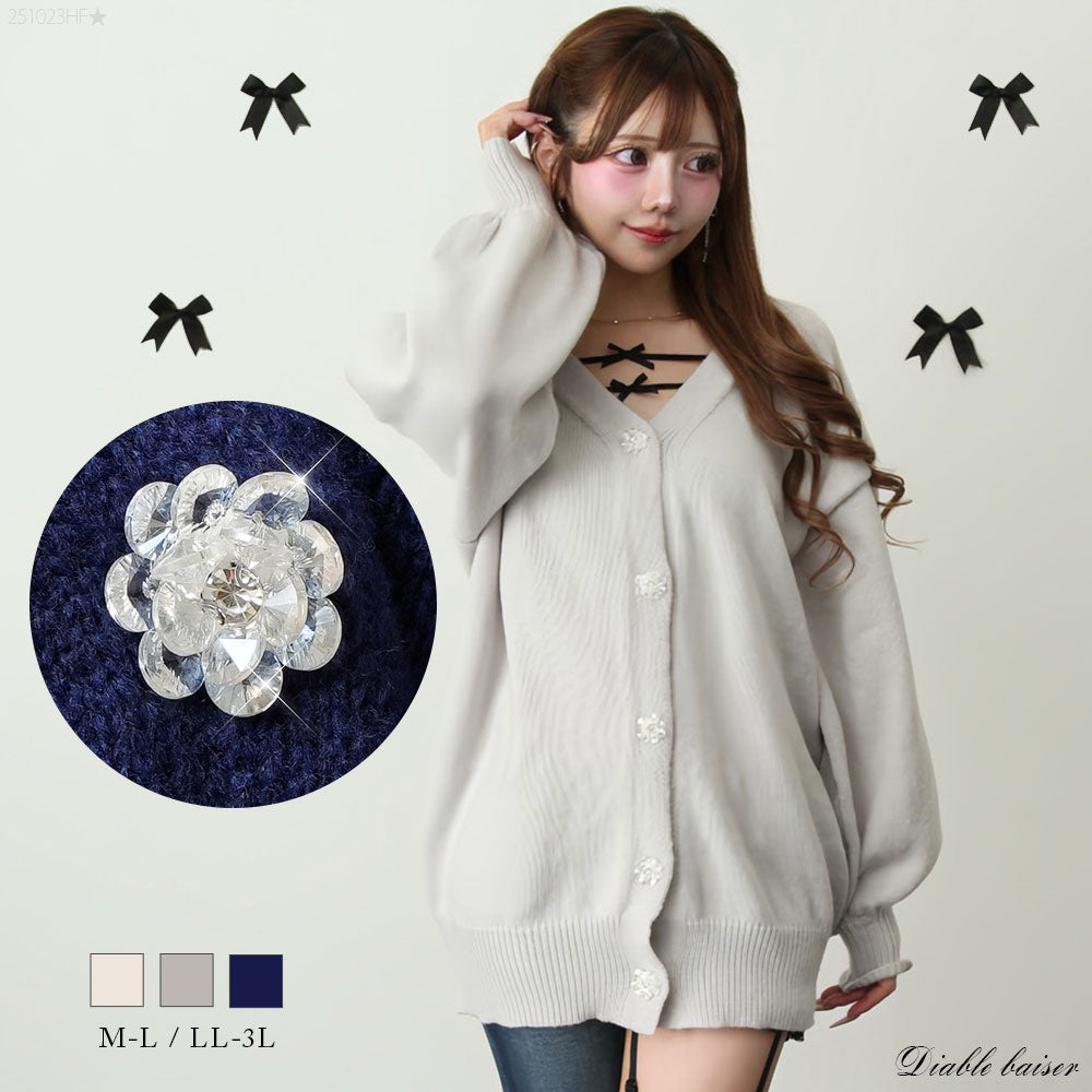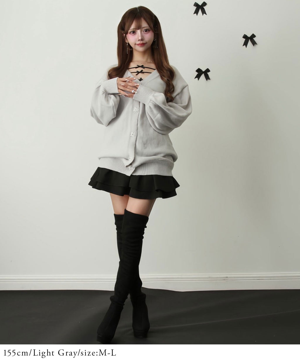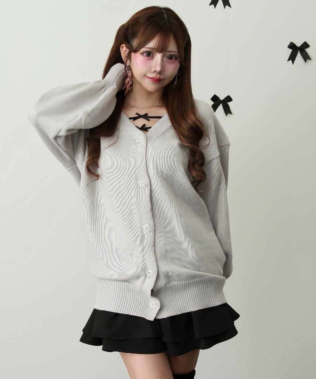 ゆるっと可愛いオーバーサイズの袖ボリュームのあざとい雰囲気のニットカーディガンのご紹介。