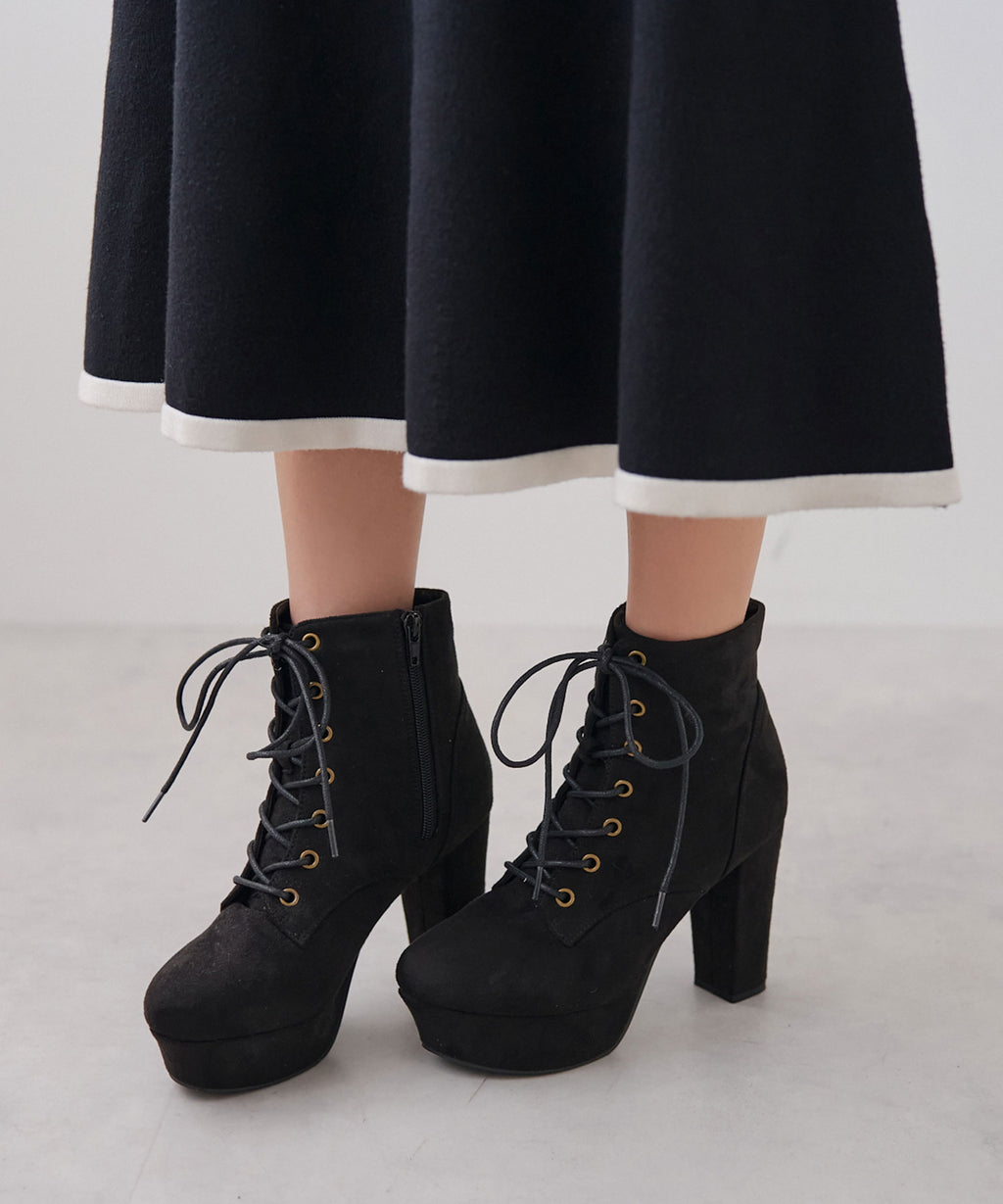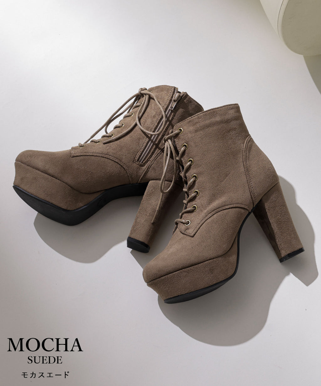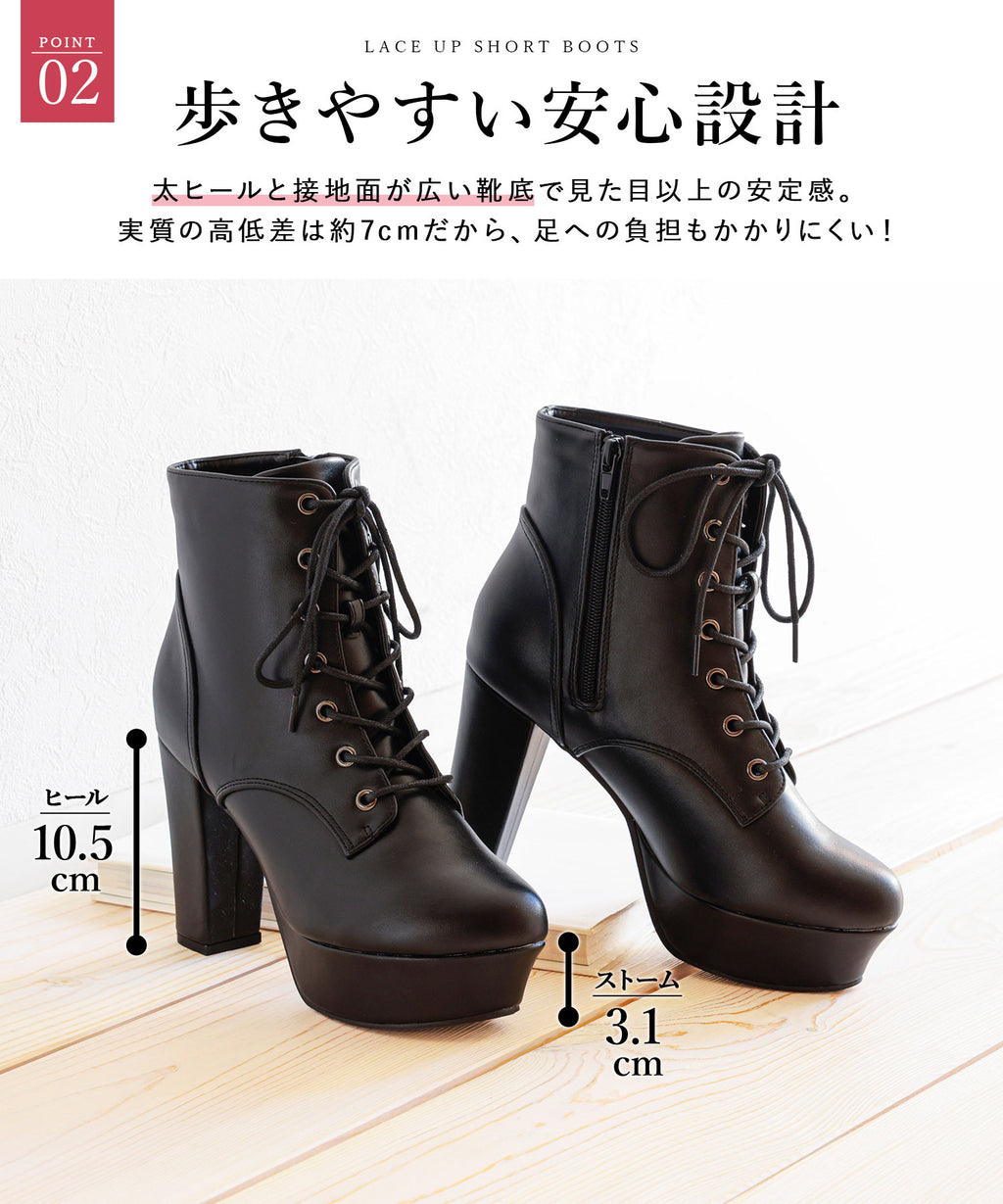 10.5cm高さのヒールは今っぽい「太め」で、3cmストームを合わせた実質高低差7.5cm設計なのでしっかりとした安定感があり履きやすさも◎