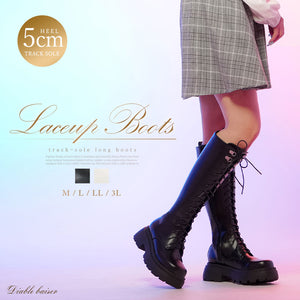 【Diablebaiser】厚底レースアップロングブーツ