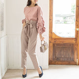 さらに付属のリボンを付ければ、ウエスト部分のアクセントに。ウエスト位置がより高く見え、細見せ効果も期待できます。