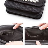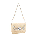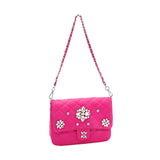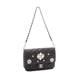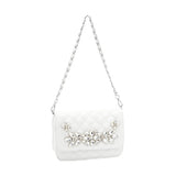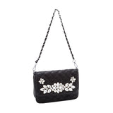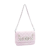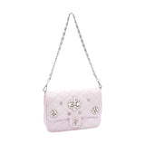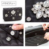 横ビジューとバラビジューには上品なキルティング、レースには表面変化のある革風素材を使用し本格的な仕上がりです。