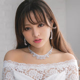 ウェディングドレス、パーティドレスなど、フォーマルな場面を華やかに彩るネックレスとピアスのブライダルセット。