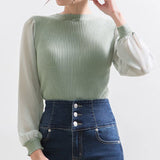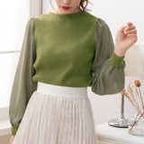 袖部分がシフォン素材のドッキングニットトップスが登場。