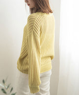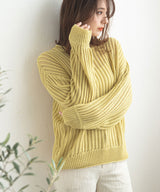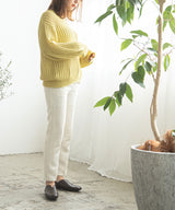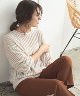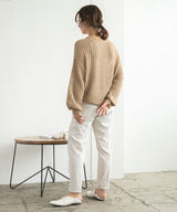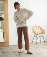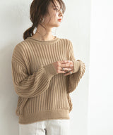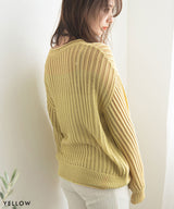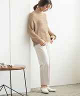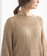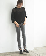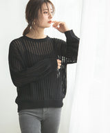 さりげなく見える素肌がヌケ感のある雰囲気を醸し出す透かし編みニット。