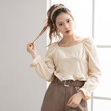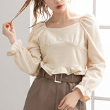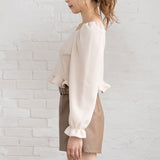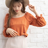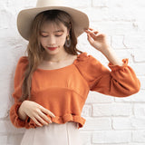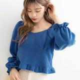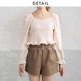 裾フリルのクロップド丈トップスです。