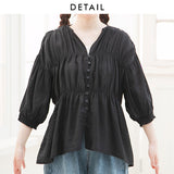 トップスとしてはもちろん、前釦を開けてカーデブラウスとしても楽しめます。