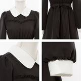 小さめの丸襟がクラシカルで上品なワンピースです。