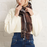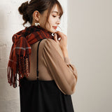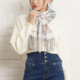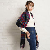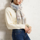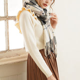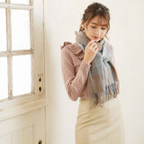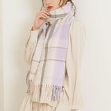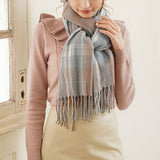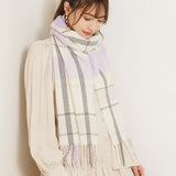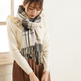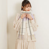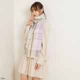 厚手でふんわりとした肌触りの良いチェック柄ストール。
