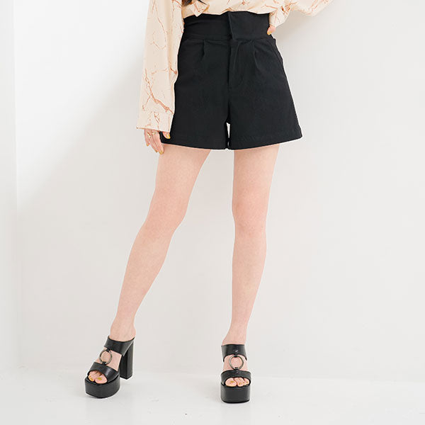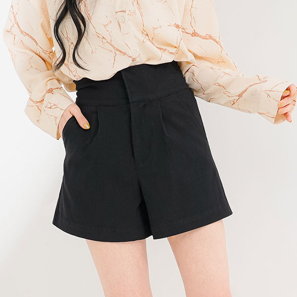 ハイウエストデザインで、身体のラインをすっきり綺麗に見せてくれるショートパンツ。