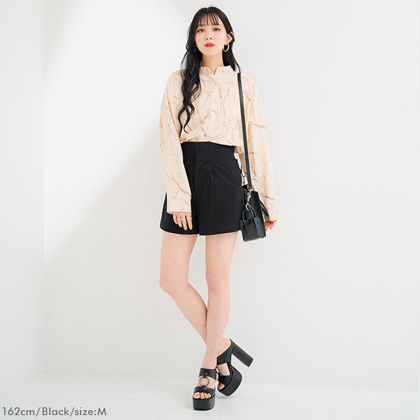 LL 3L 大きいサイズ 推し活 参戦服 双子コーデ お揃いコーデ くすみカラー 淡い色 ショートパンツ ハイウエスト 美脚 スタイルアップ ストレッチ 細見え 女子会