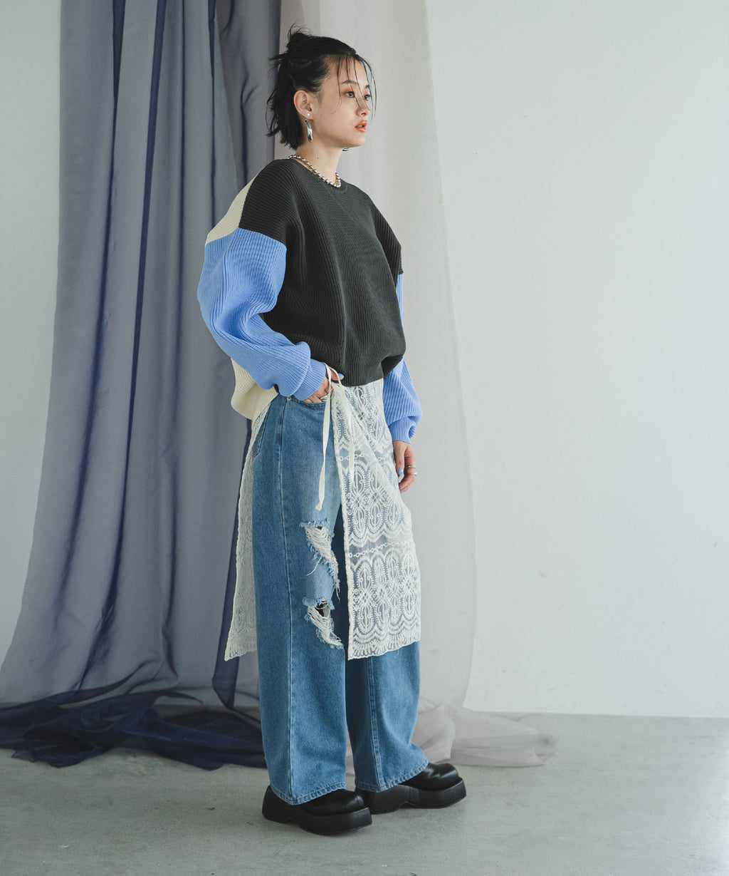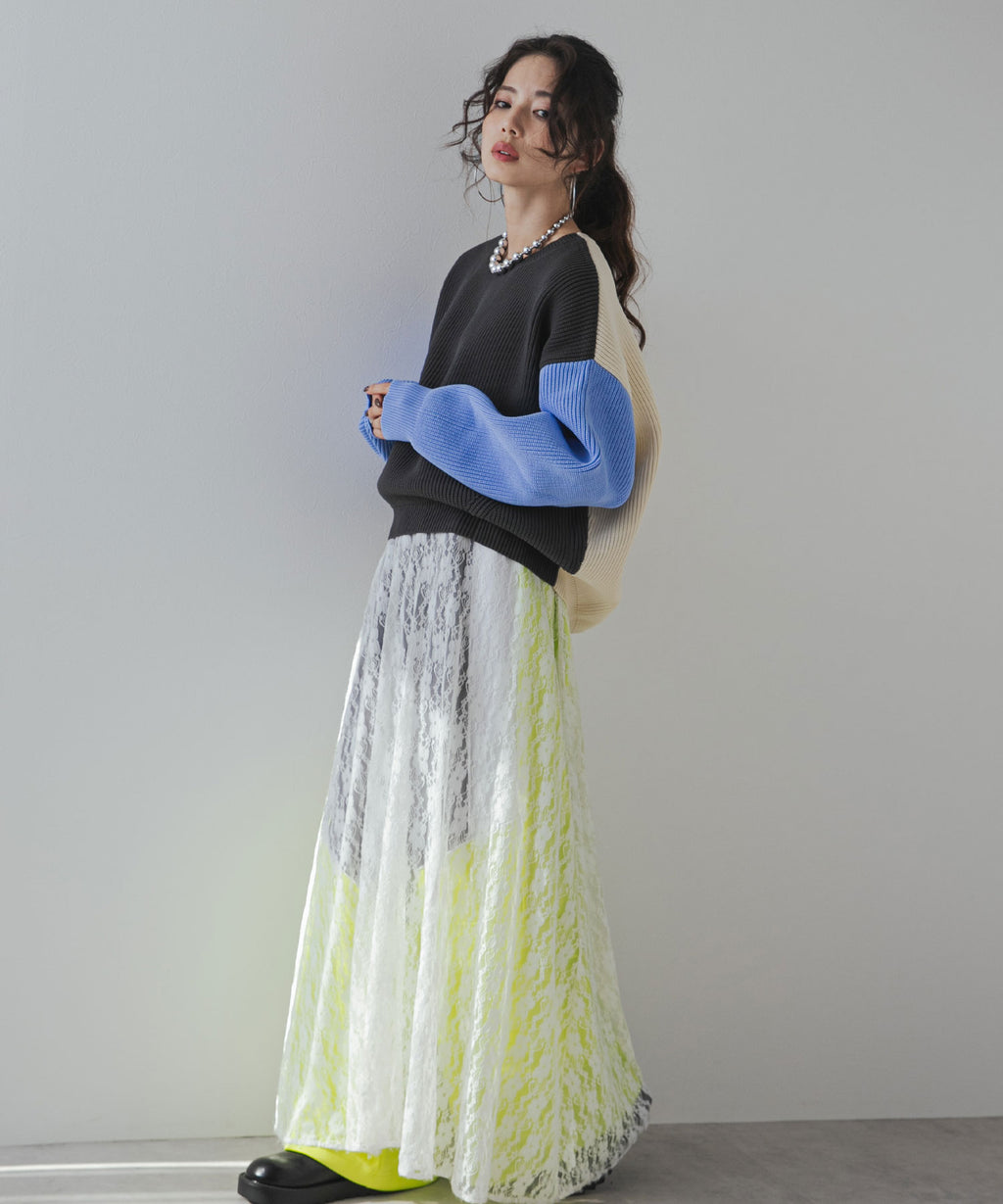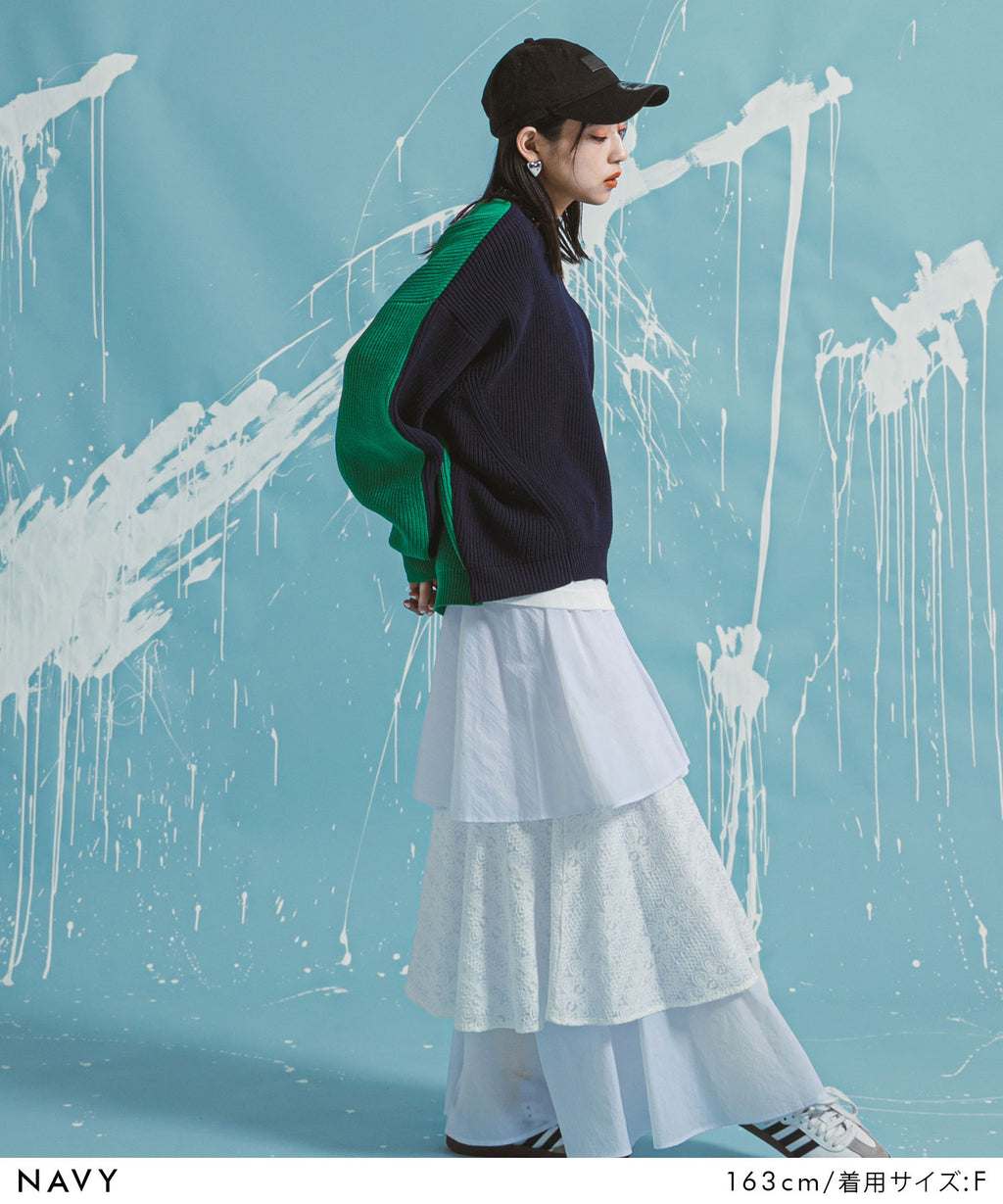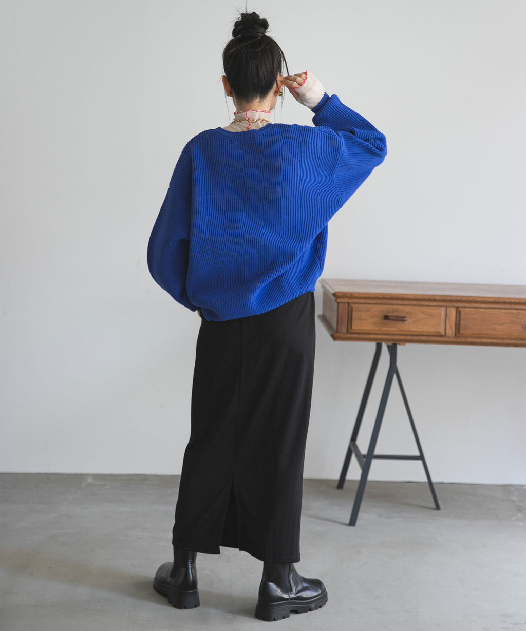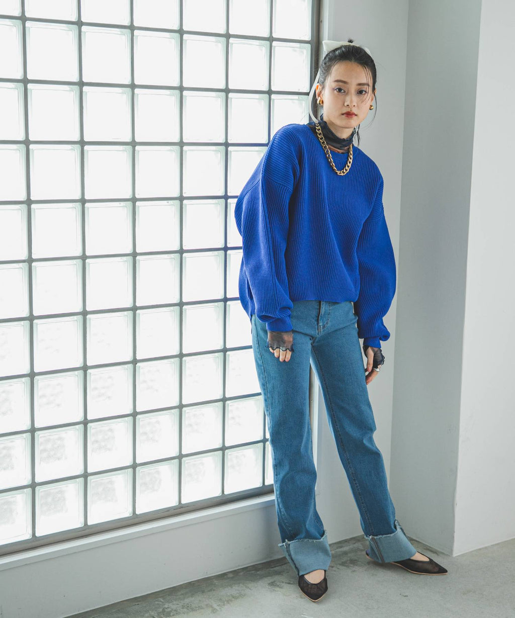 デニムに合わせるのはもちろんスカートにも合わせやすい丈感です。