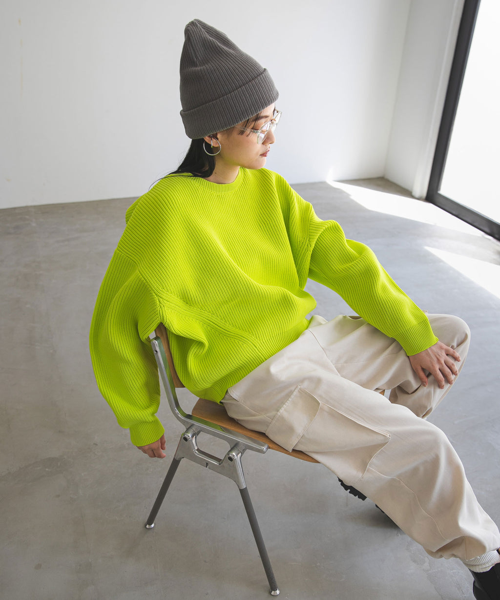 軽くて暖かいダンボールニットを変形アームにすることでシンプルながらも様になるニットに