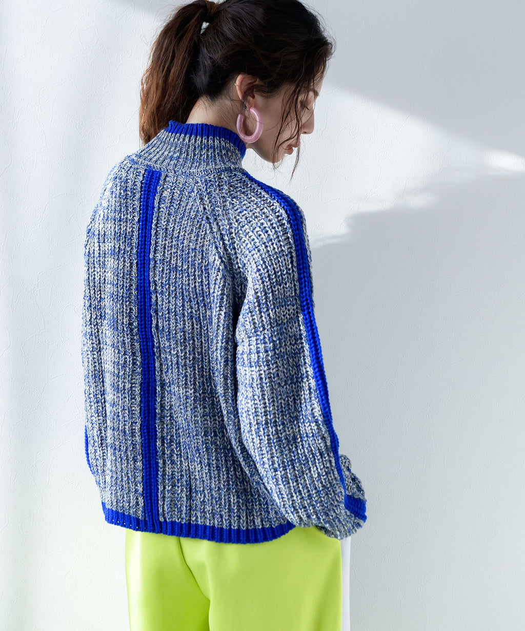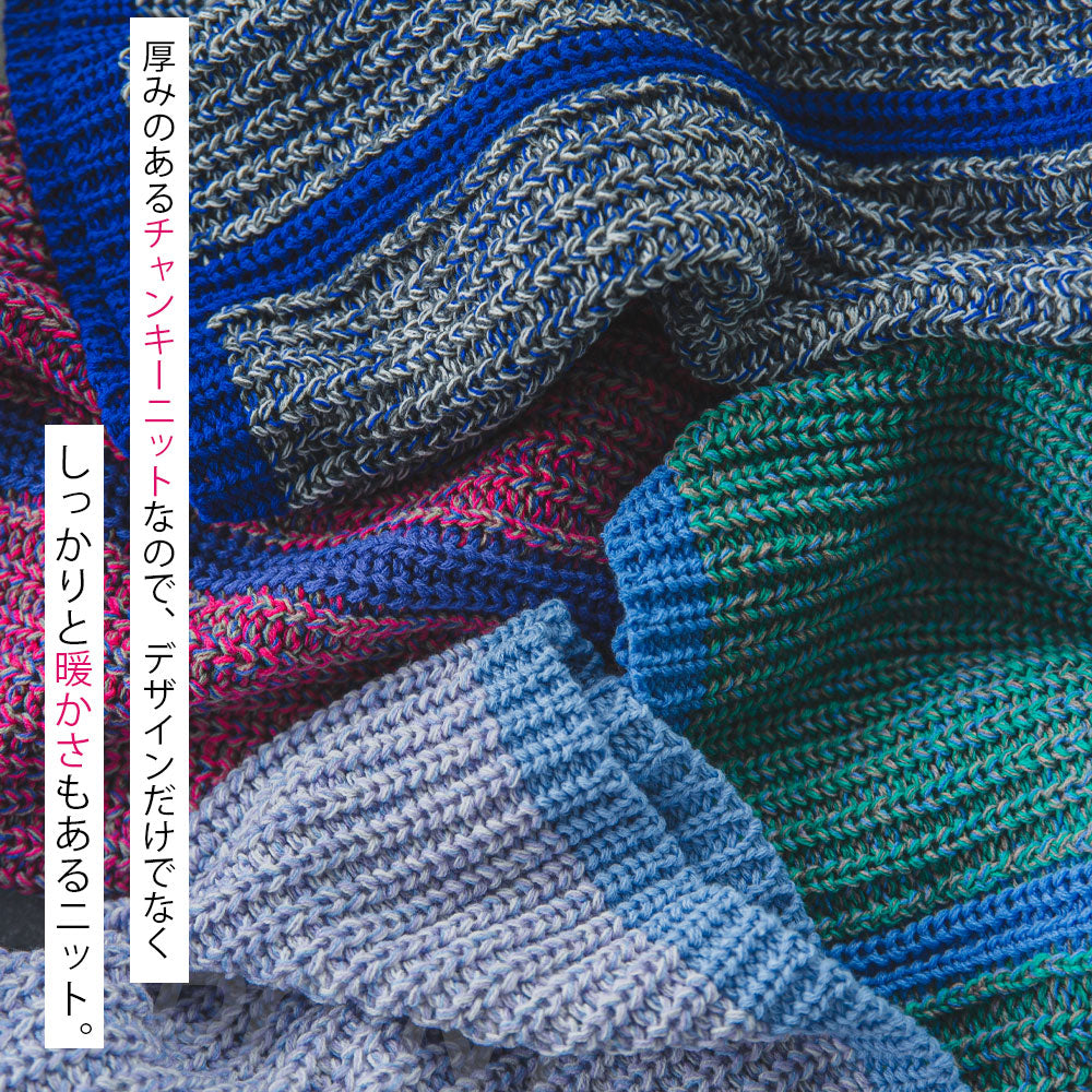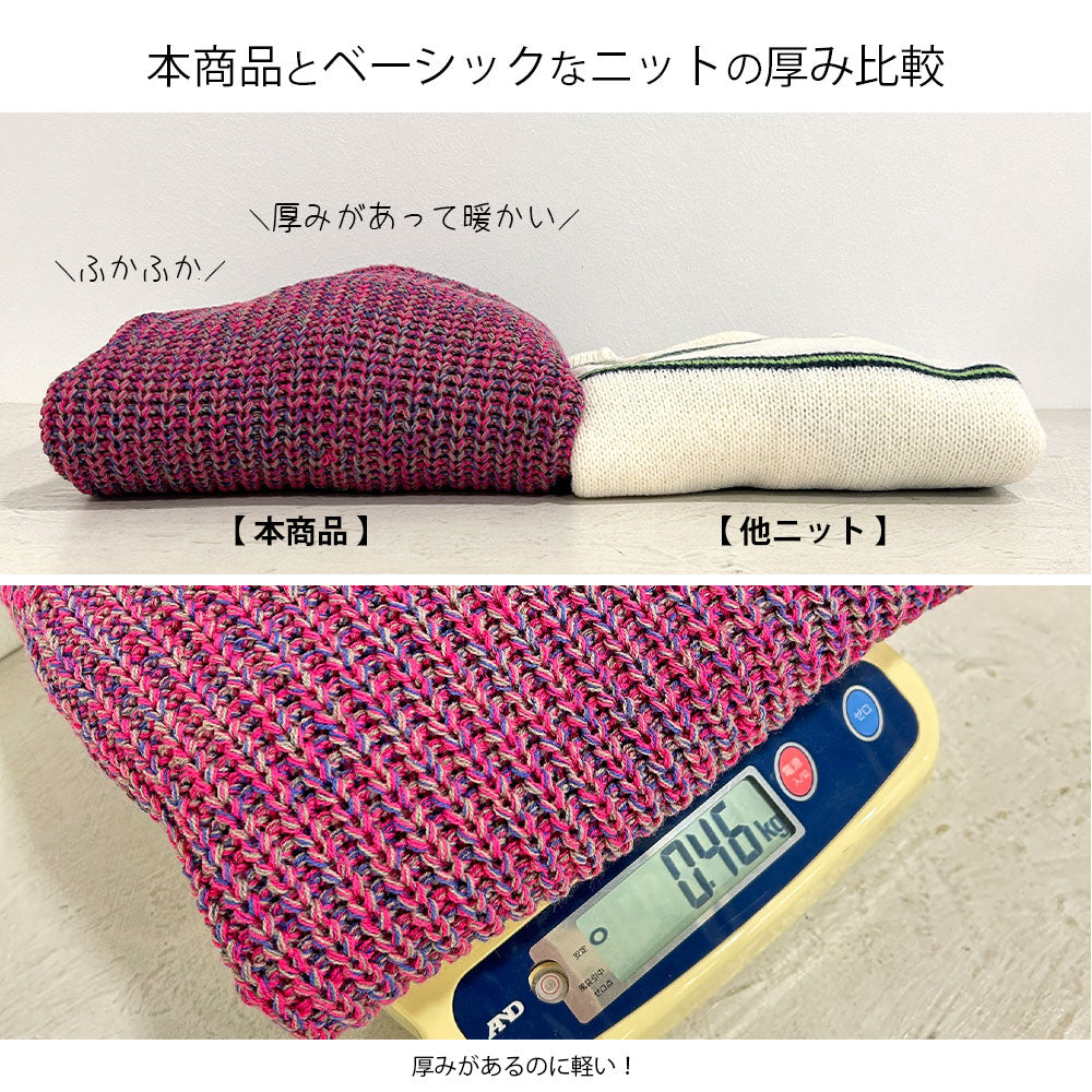 アクリルのニットで、ざっくりとした編地がカジュアル感を演出します。