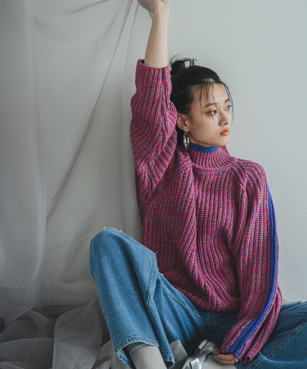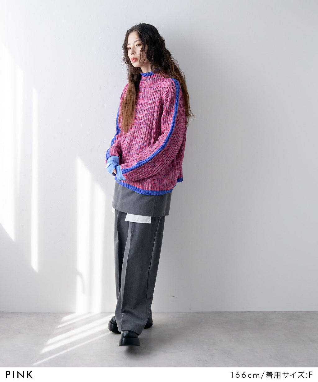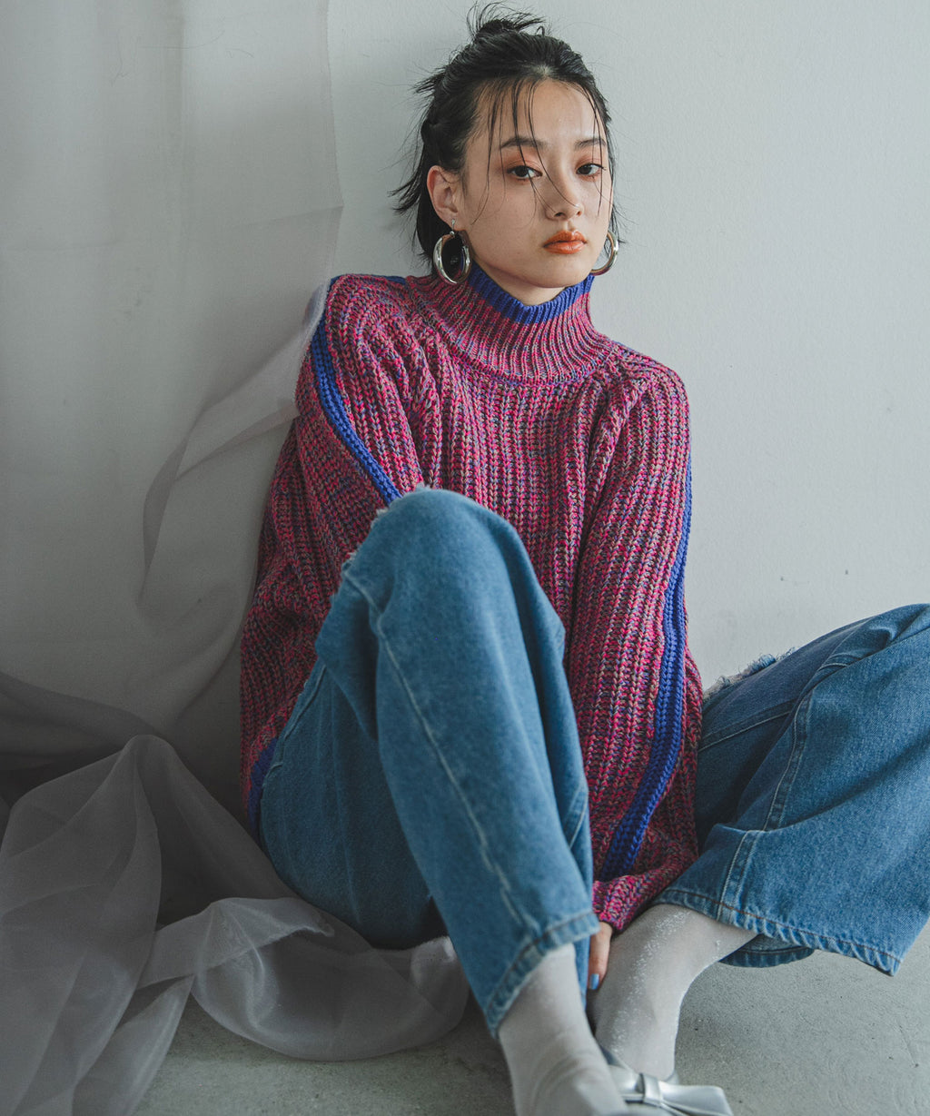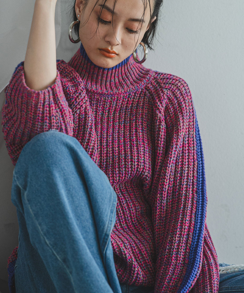 ハイネックとルーズなシルエットがこなれ感あふれるアイテム。