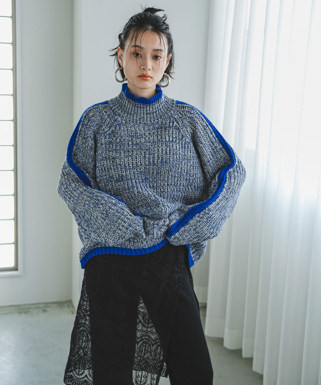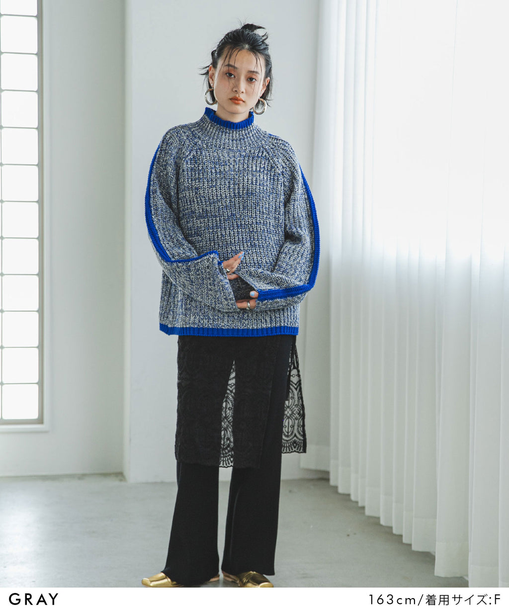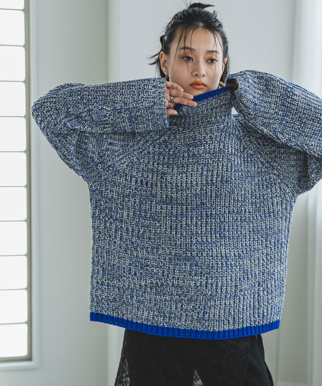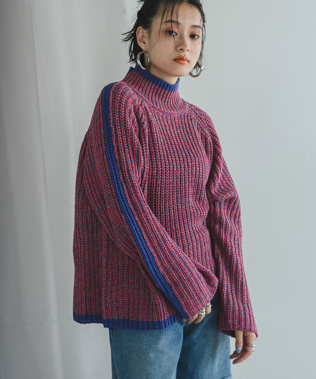 ハイネックとルーズなシルエットがこなれ感あふれるアイテム。