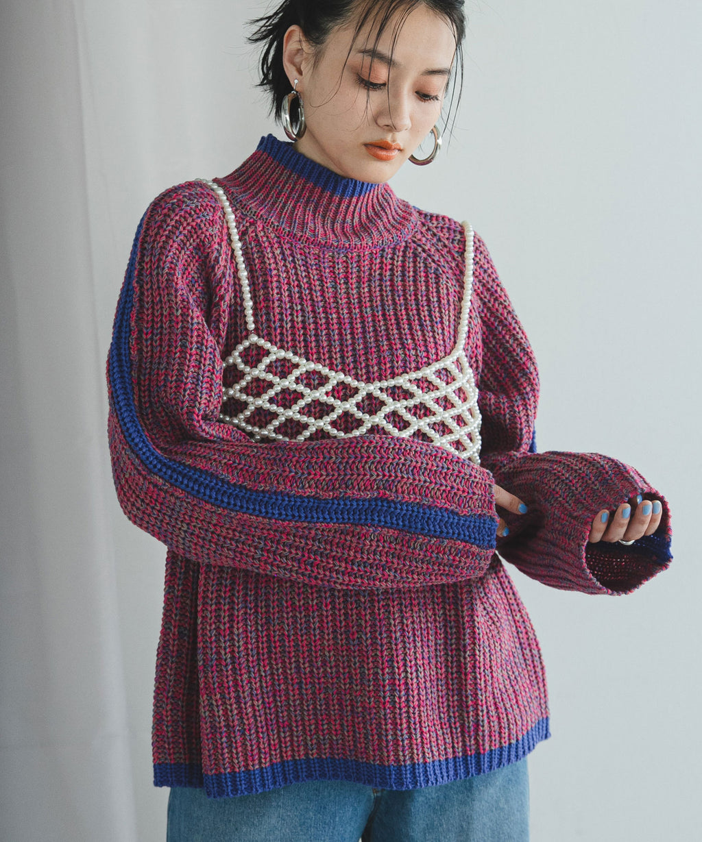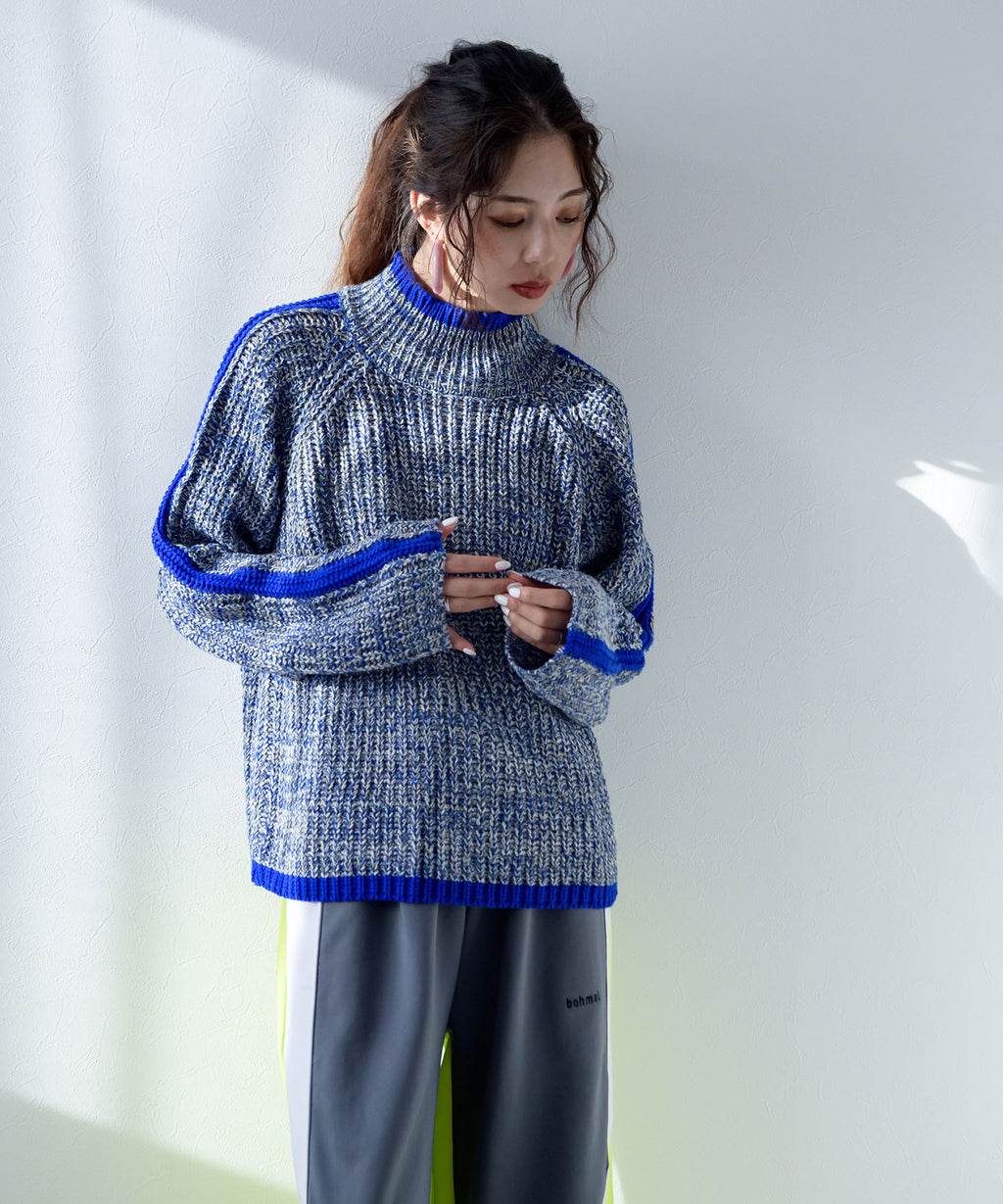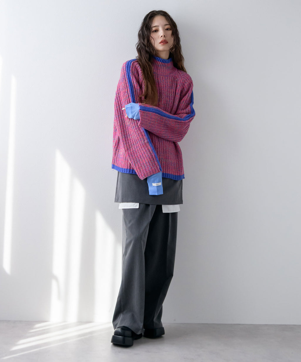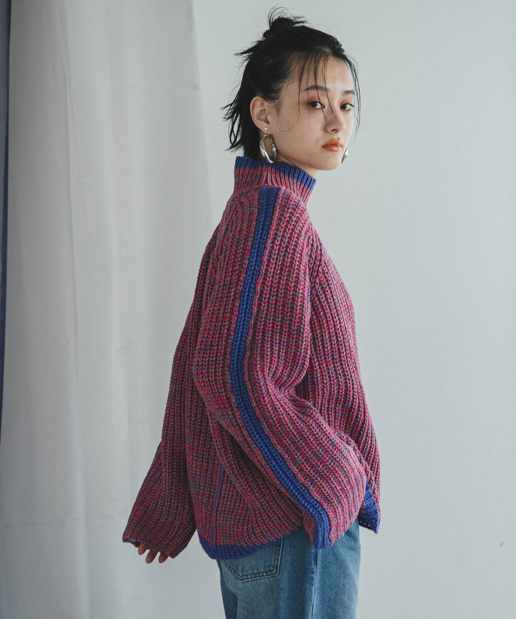 ハイネックとルーズなシルエットがこなれ感あふれるアイテム。