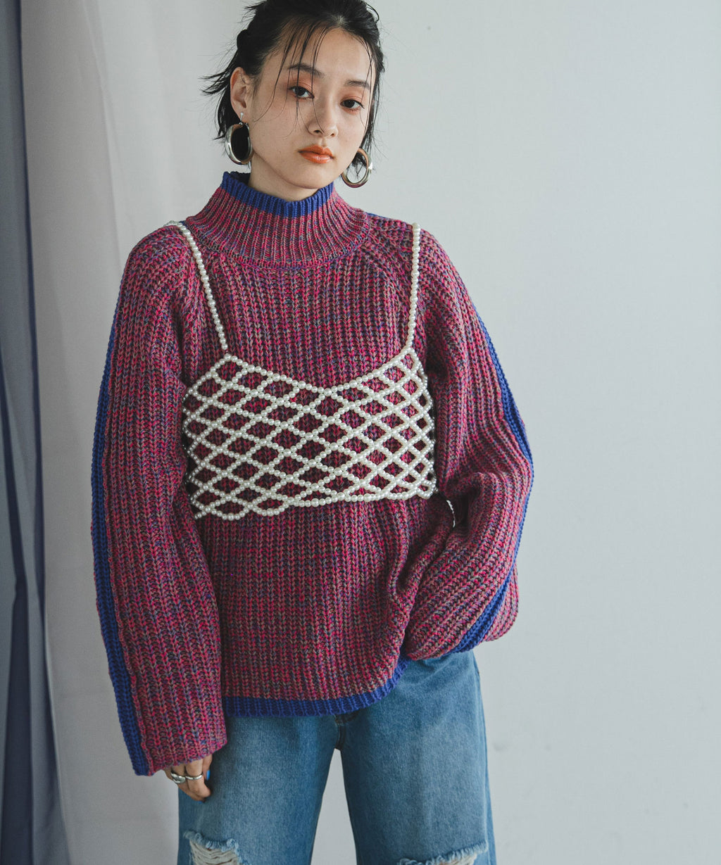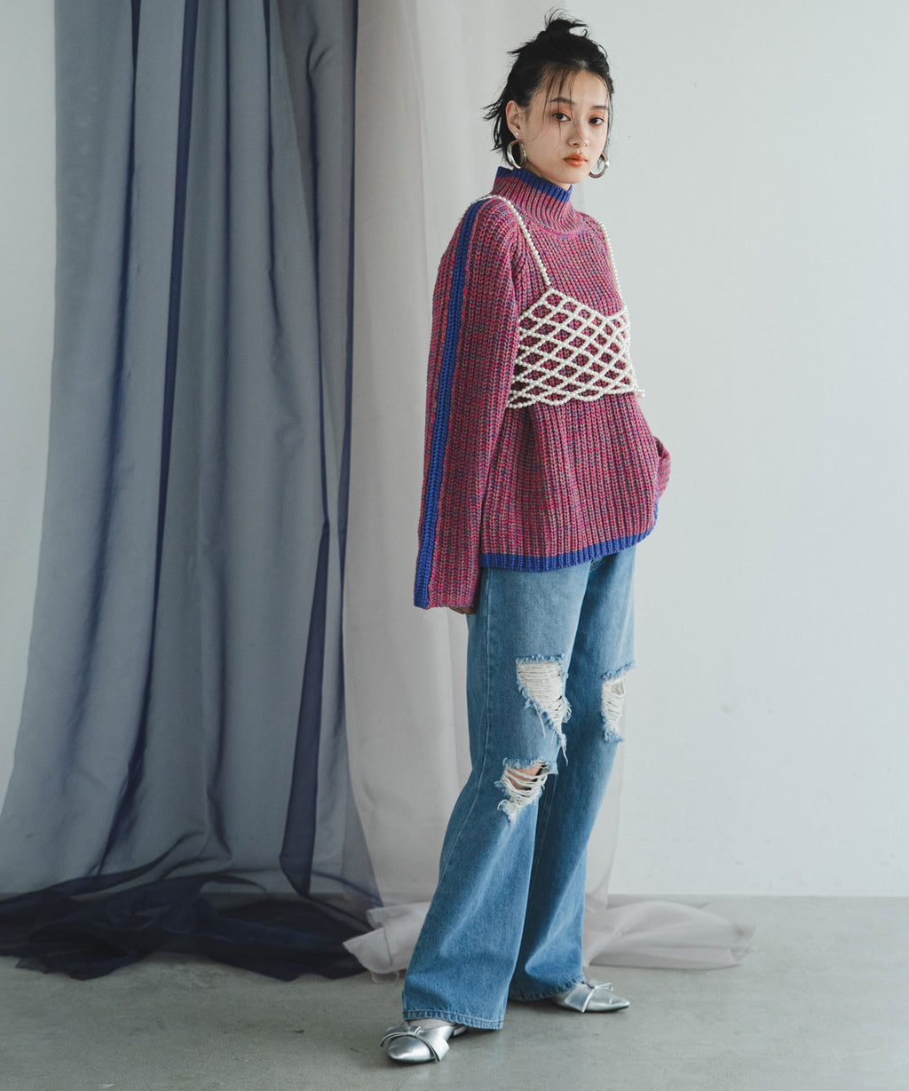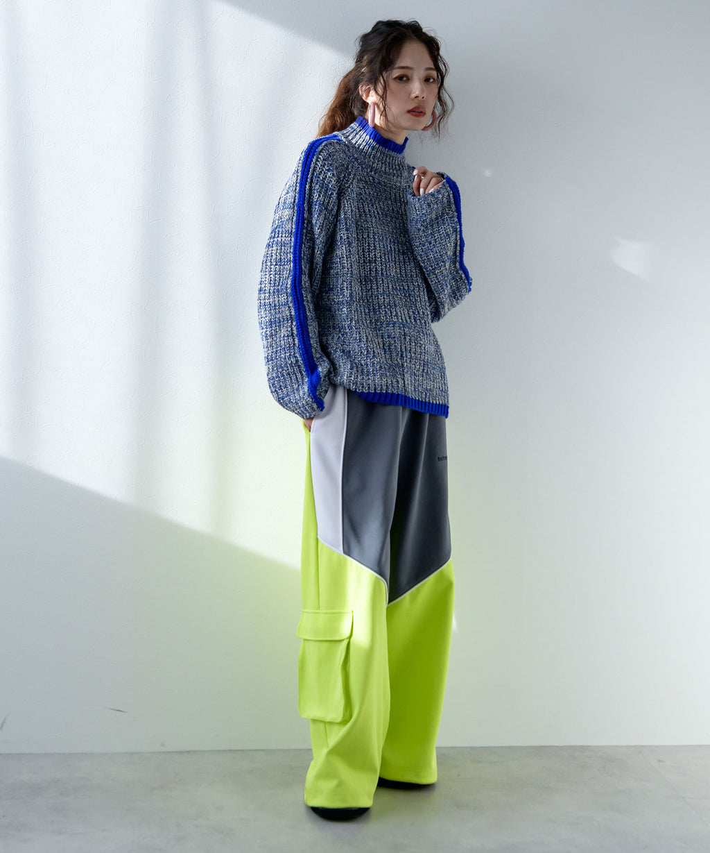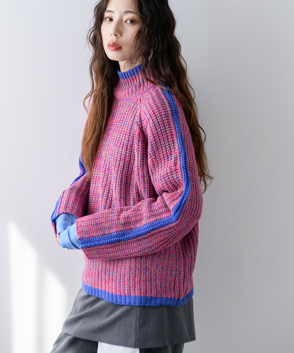 ハイネックとルーズなシルエットがこなれ感あふれるアイテム。