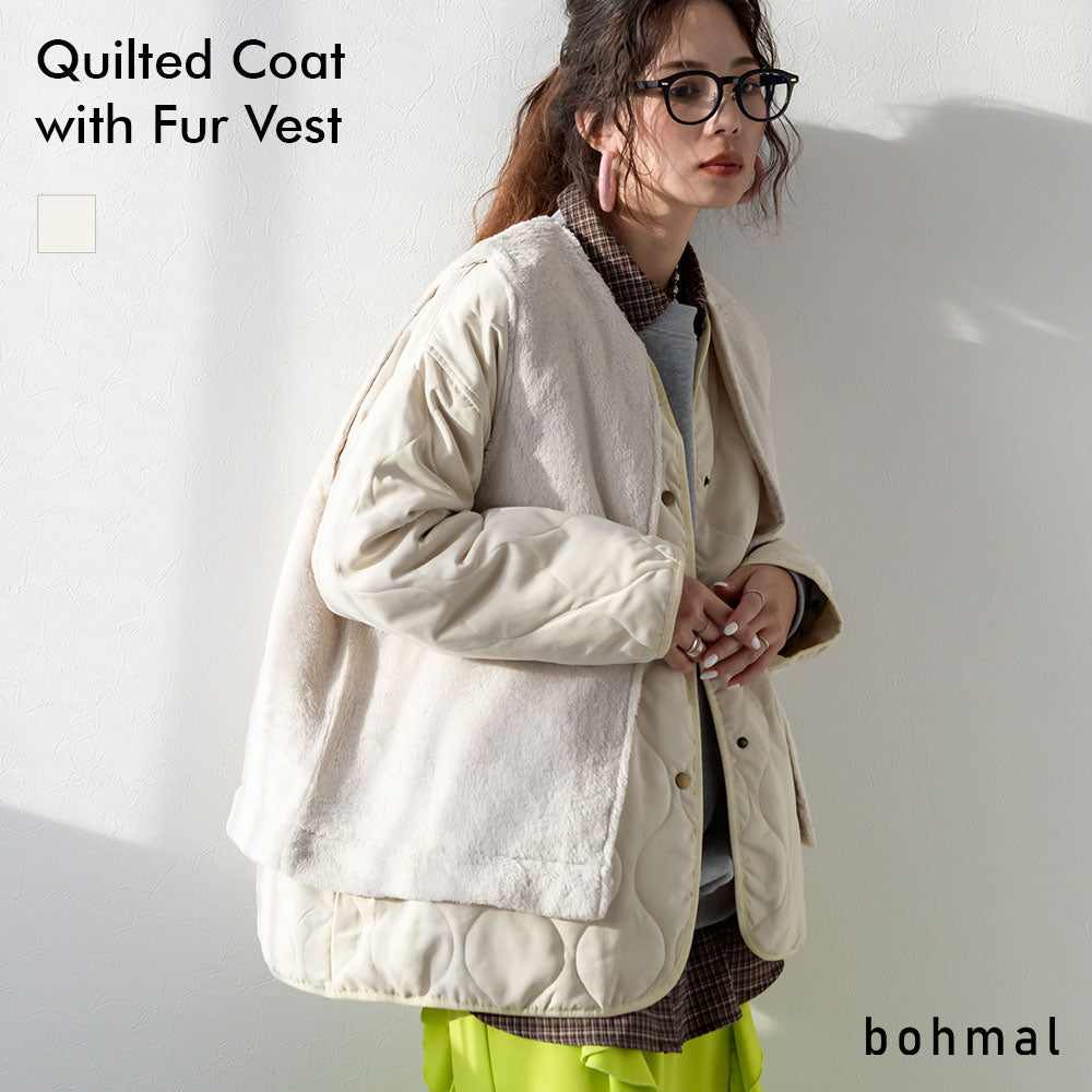 進化系アウター:キルティングミドル丈コート×ファーベスト