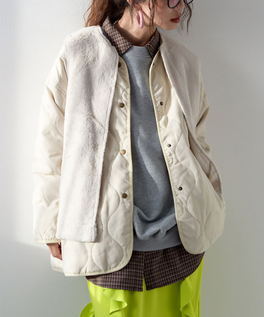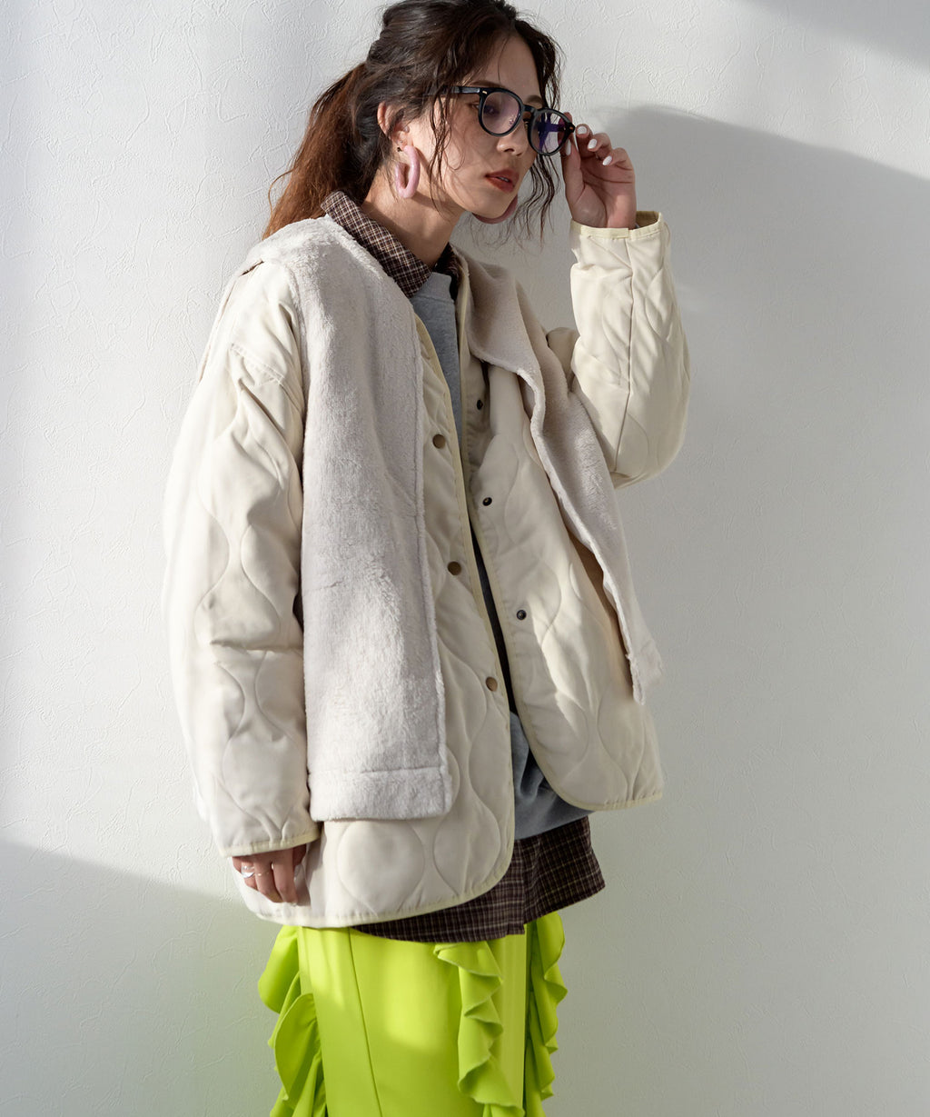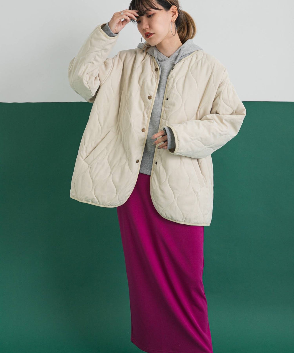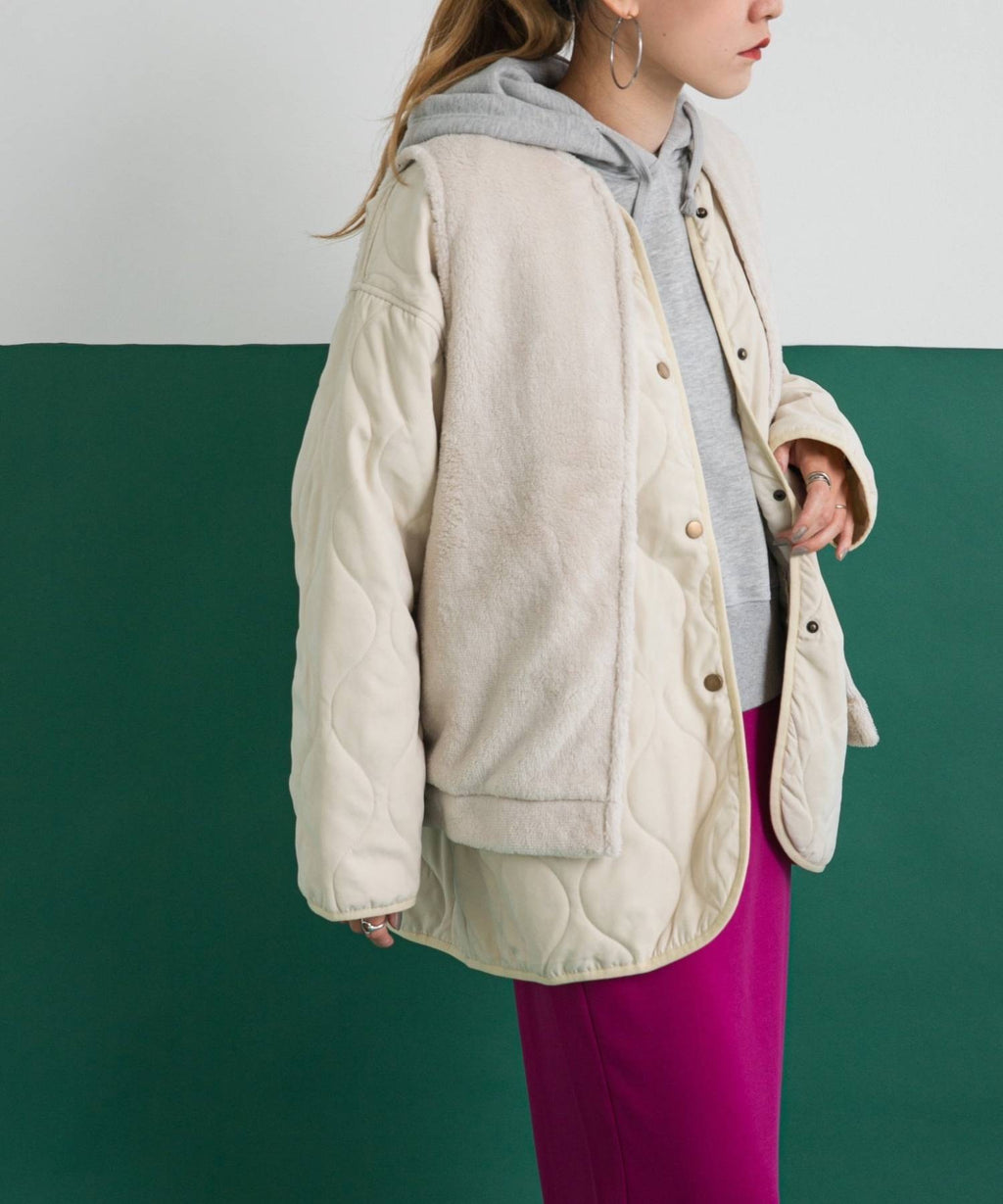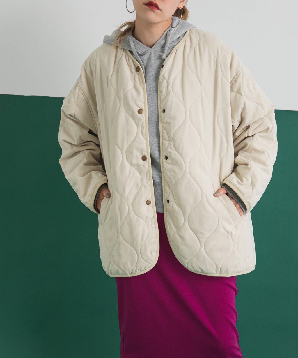 程よいぬけ感のあるシルエットは1枚で着ていても様になるキルティングアウターです。