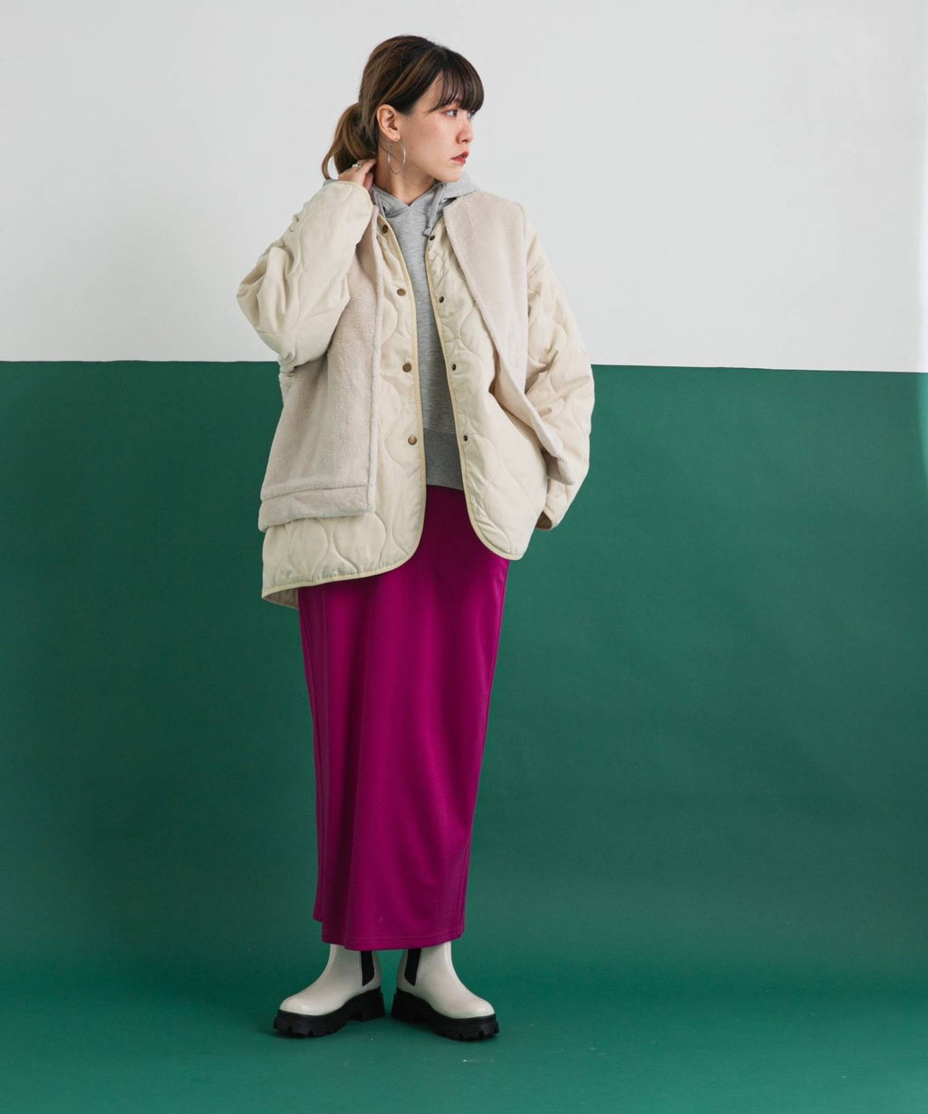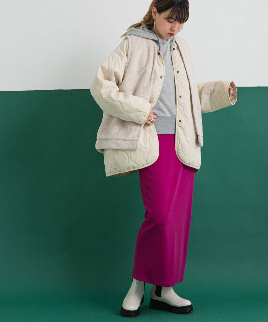 丈が長すぎないミドル丈のキルティングアウターは