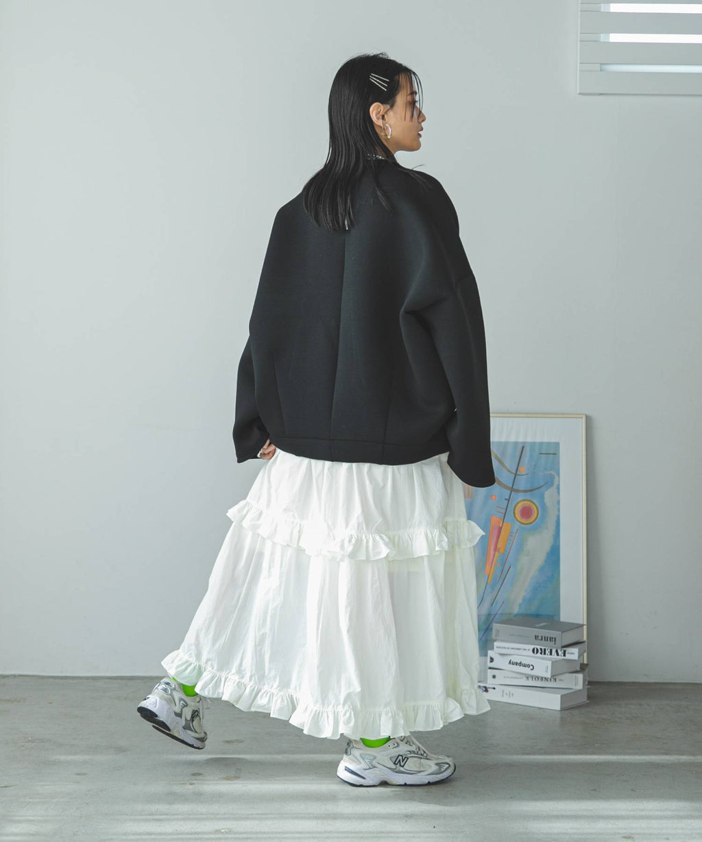カジュアルになりすぎないようにボンディング素材を使用し、