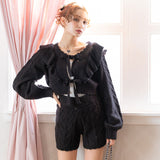 同素材・同柄で作った選べる2WAYダブルリボンショートカーデ(532901)とセットアップで着ていただくのがおすすめです!