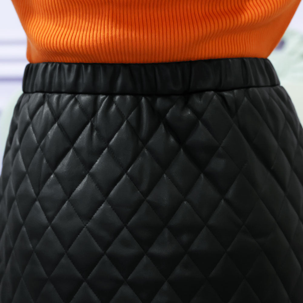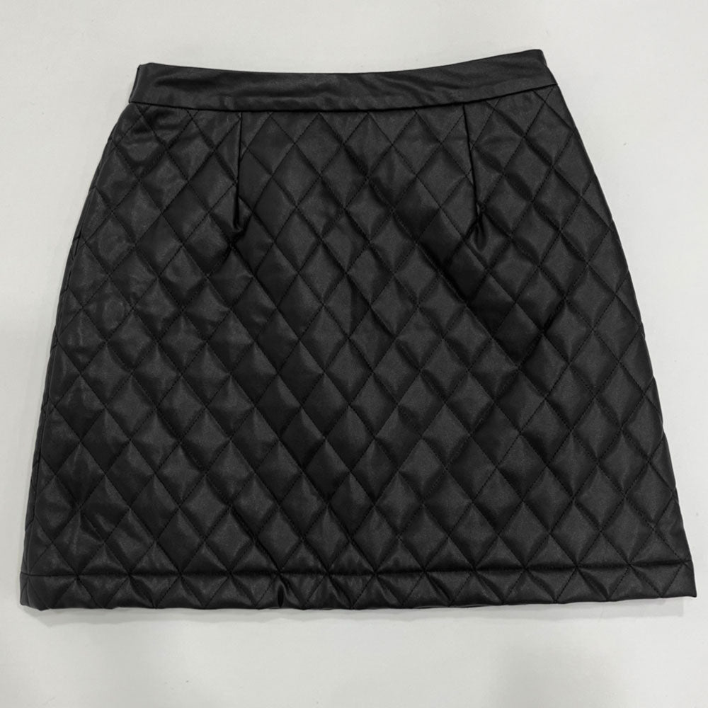 フェイクレザーをキルティング加工しエッジの効いたスカート