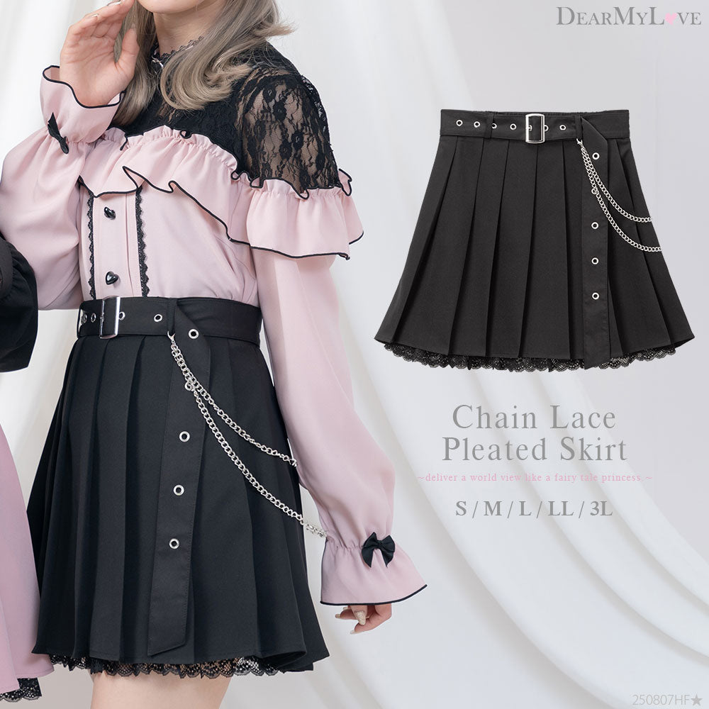 長めの垂れたベルトデザインに、サイドのチェーンがポイントのスカートです。