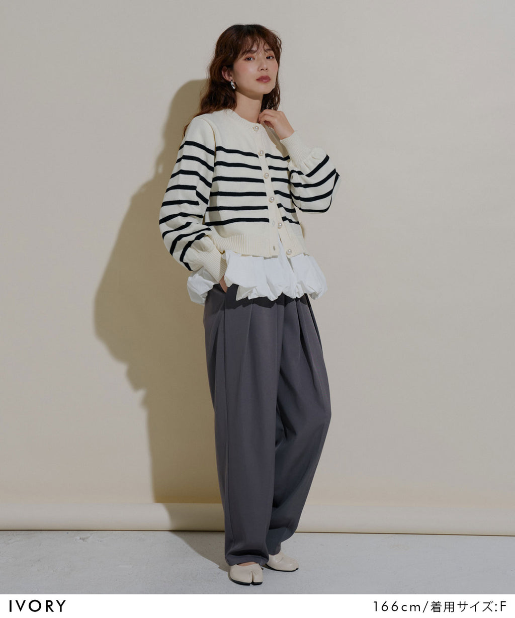 ぷっくりパールボタンが魅力的なボーダーカーディガン