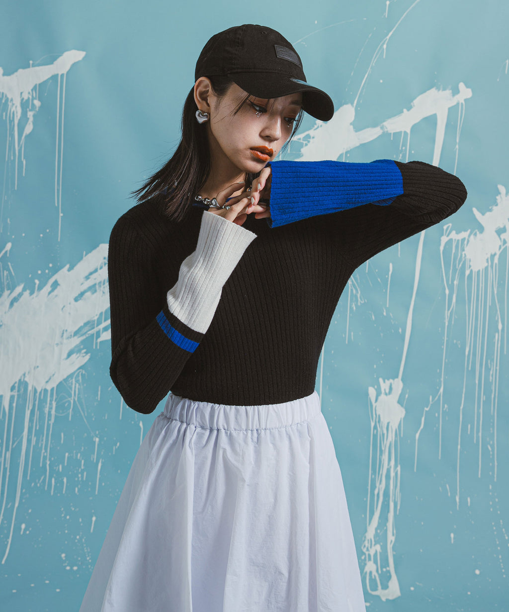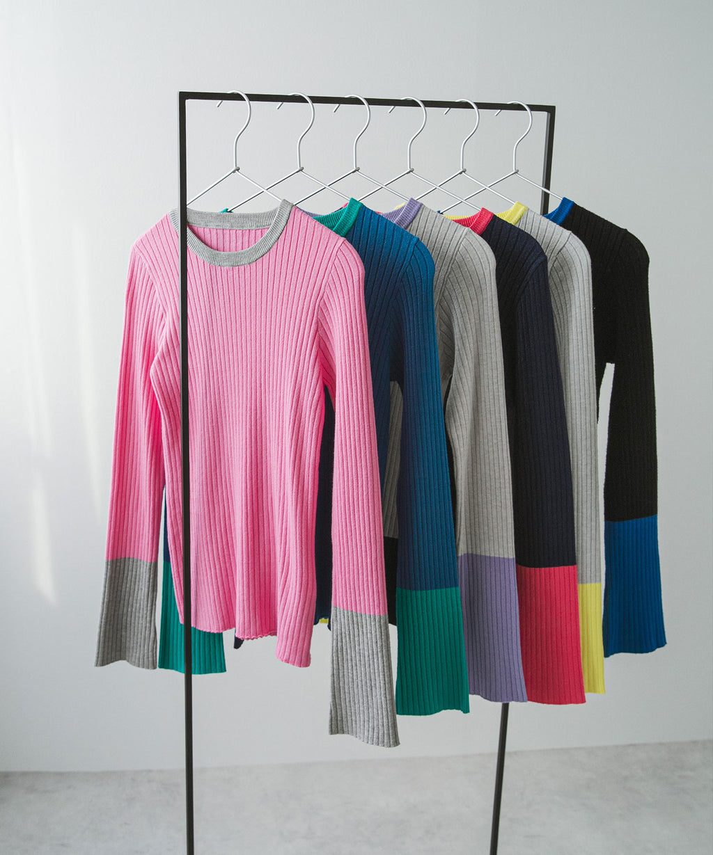 フレア袖がバイカラーに。さりげないラインや、裾にもオリジナルカラーを。