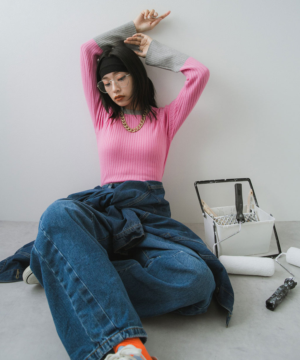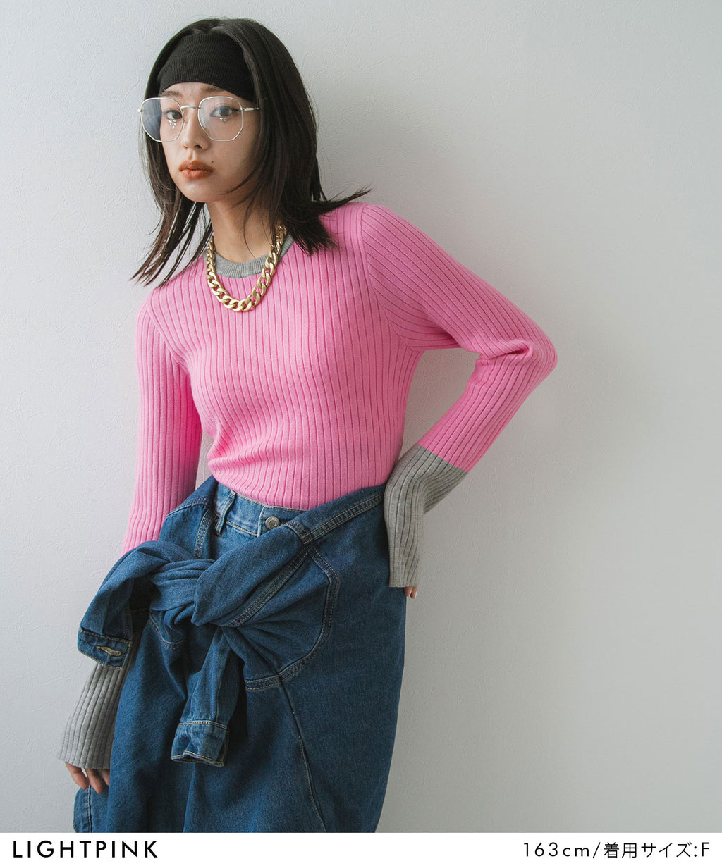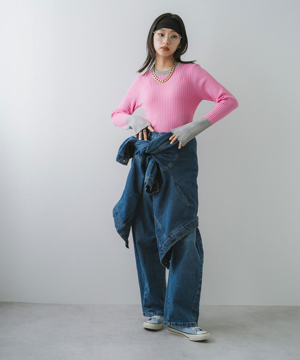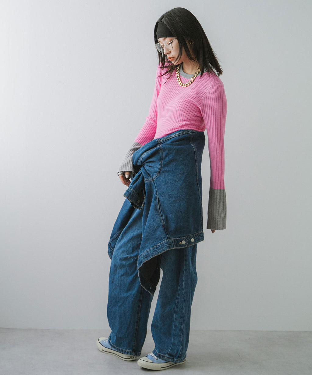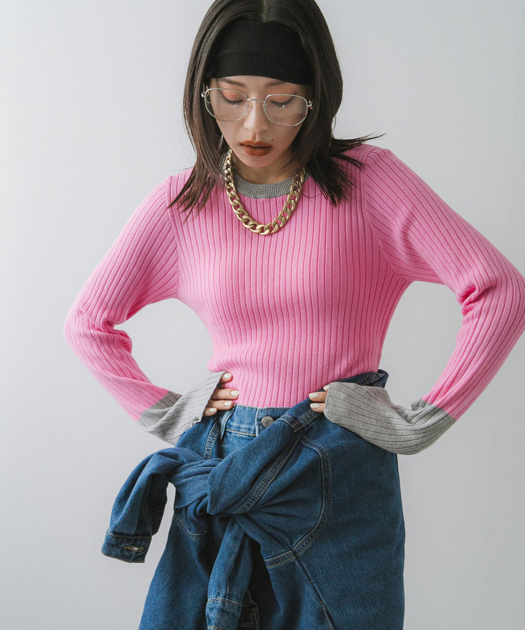 首元、袖の配色を見せてレイヤリングを楽しむのも◎