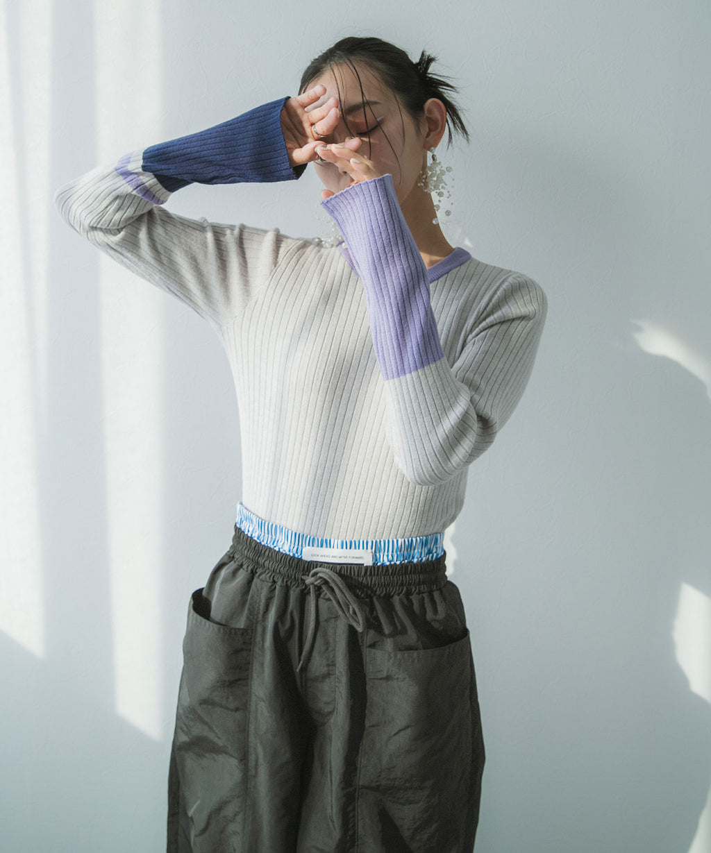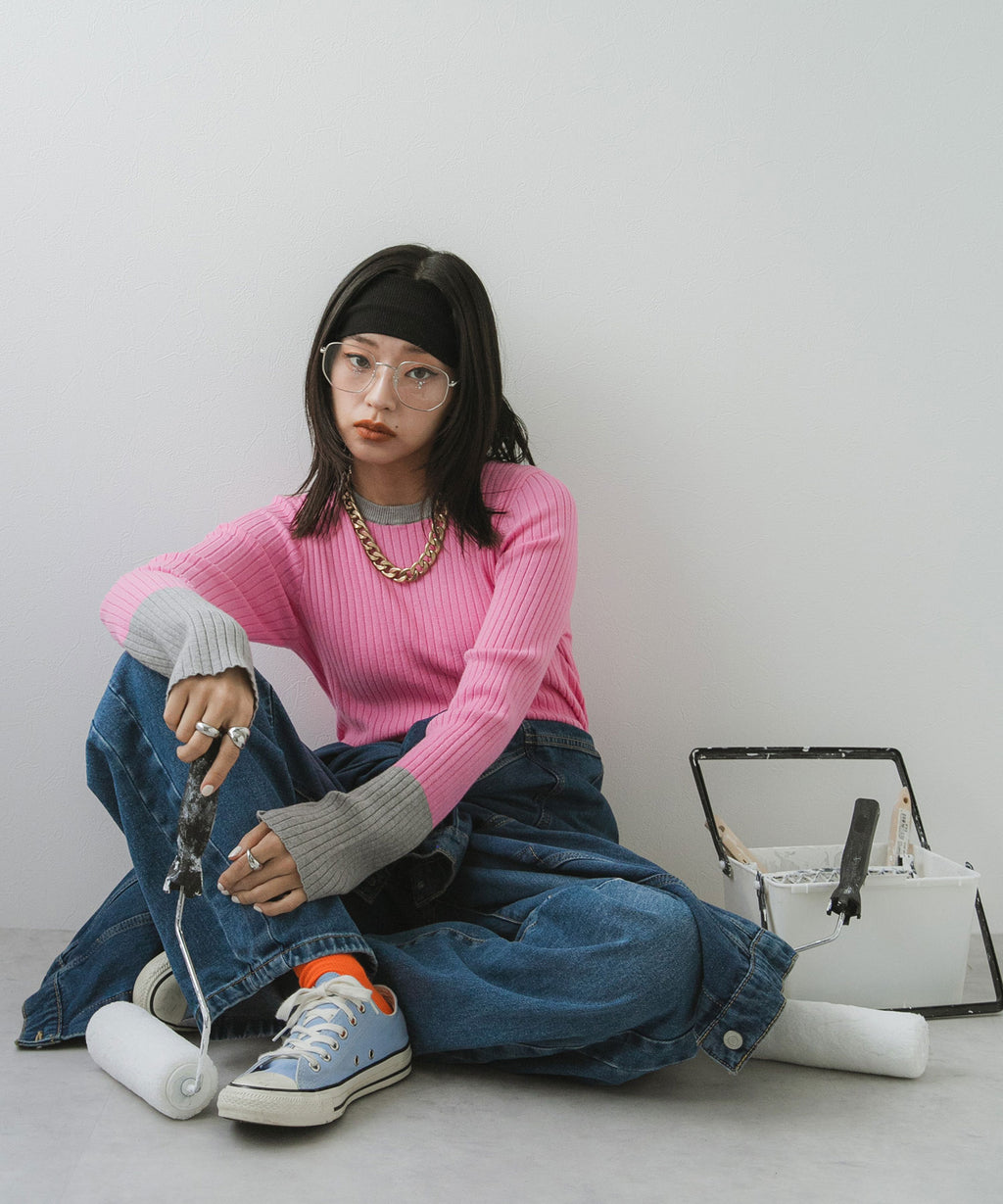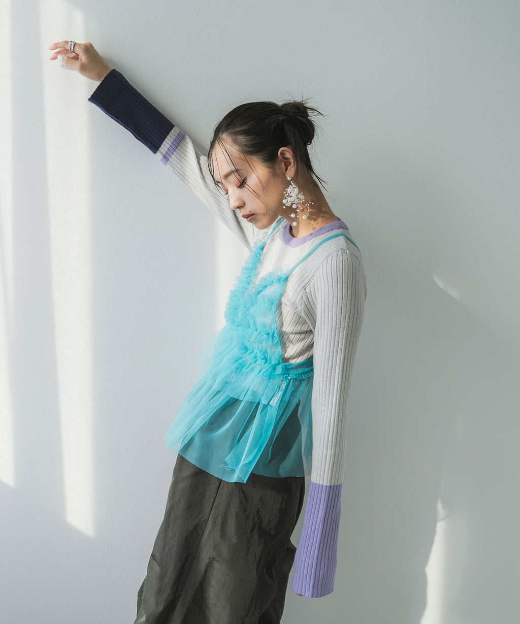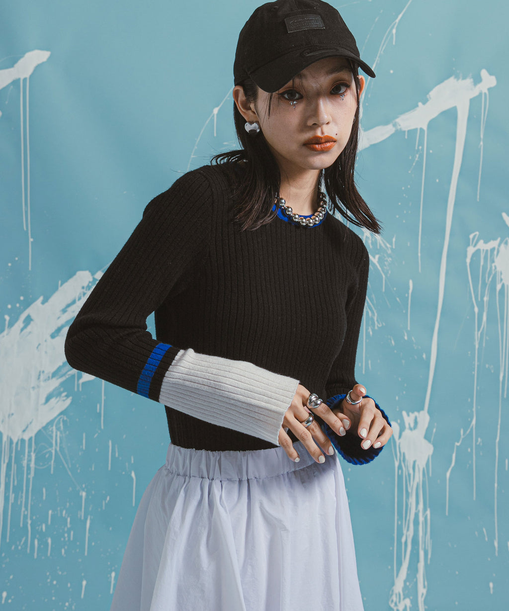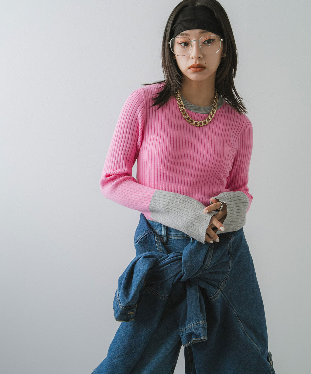 首元、袖の配色を見せてレイヤリングを楽しむのも◎