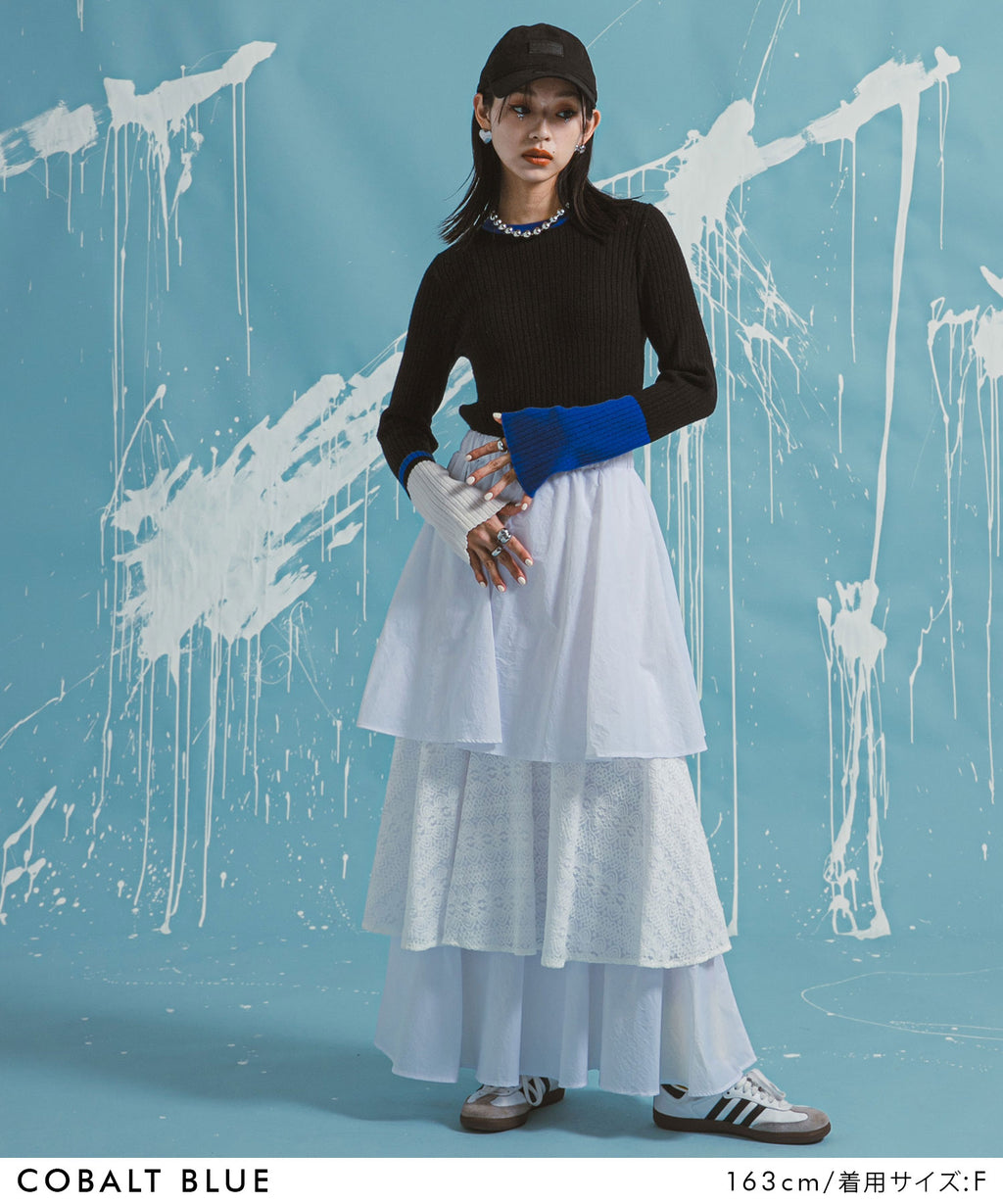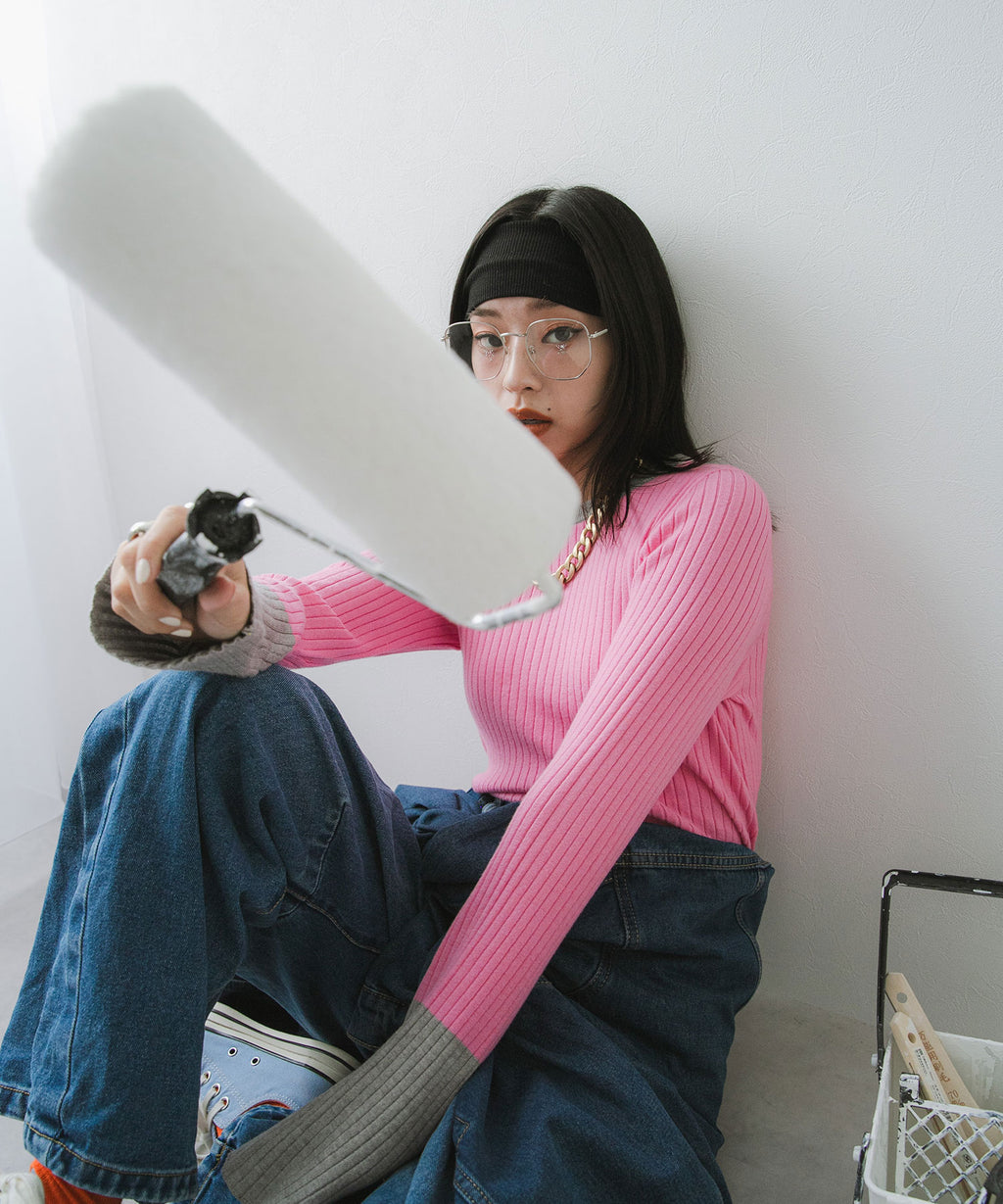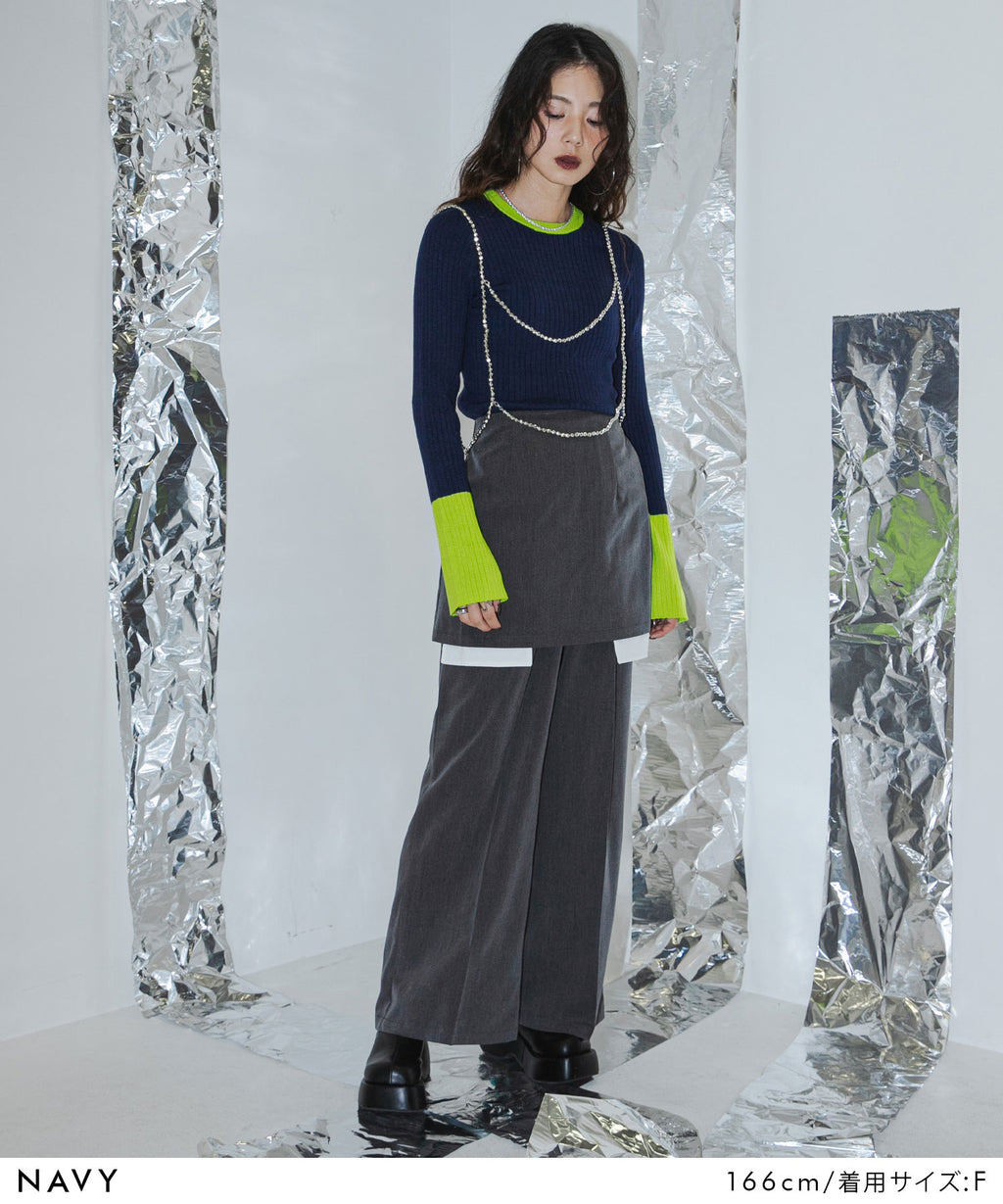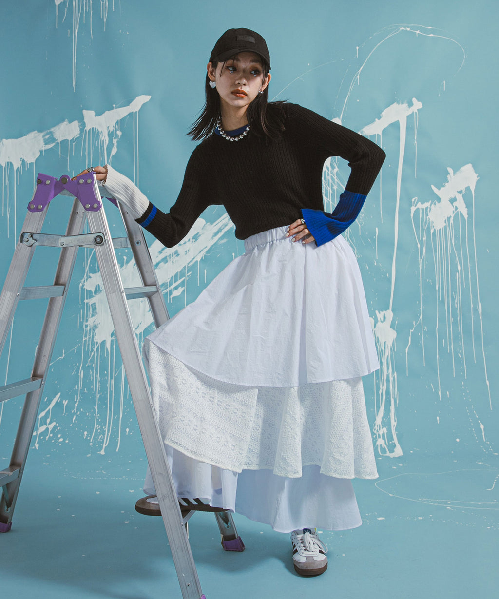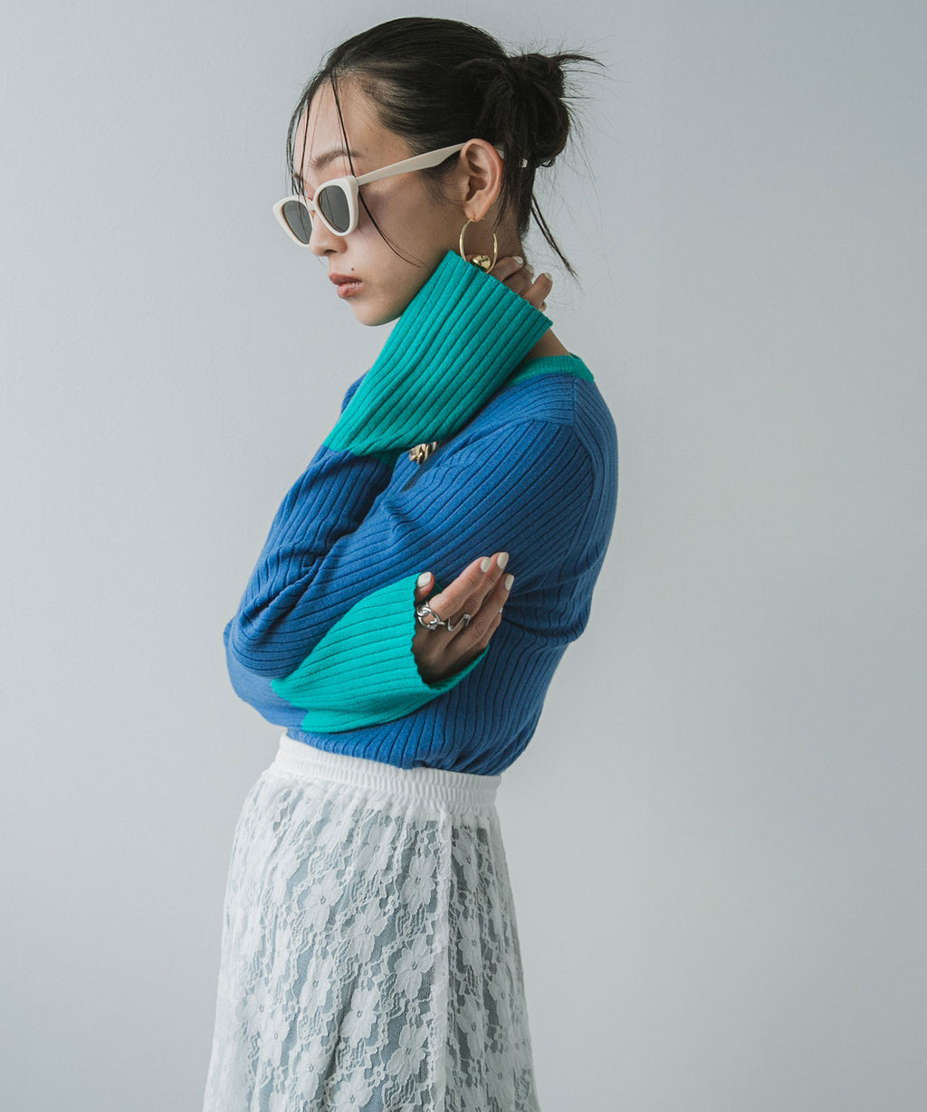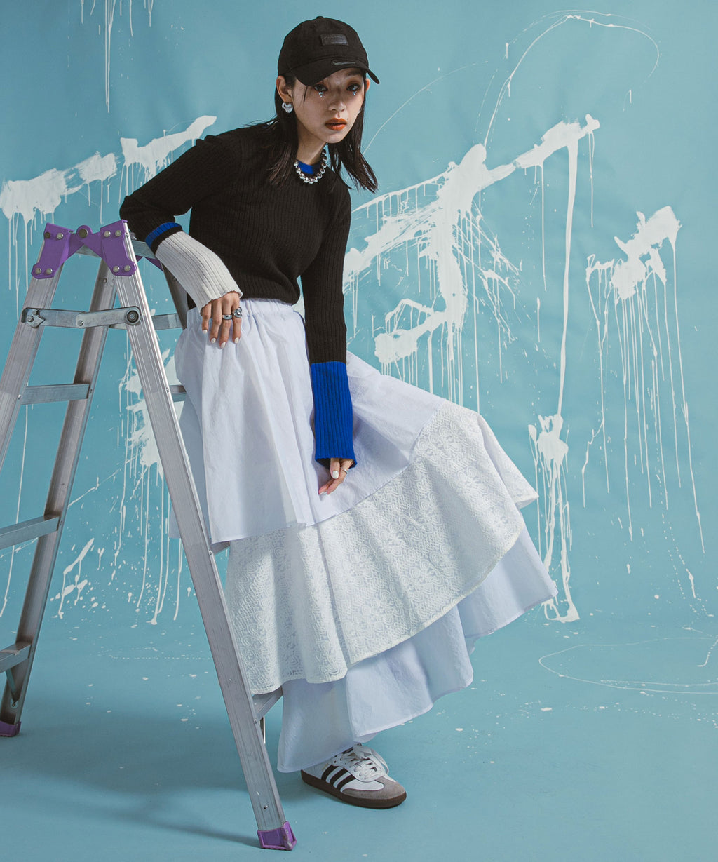 首元、袖の配色を見せてレイヤリングを楽しむのも◎