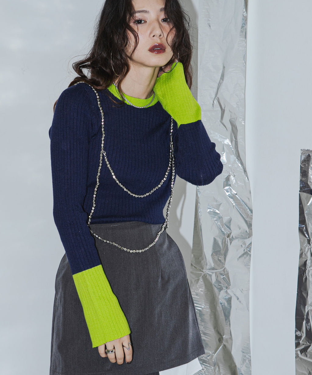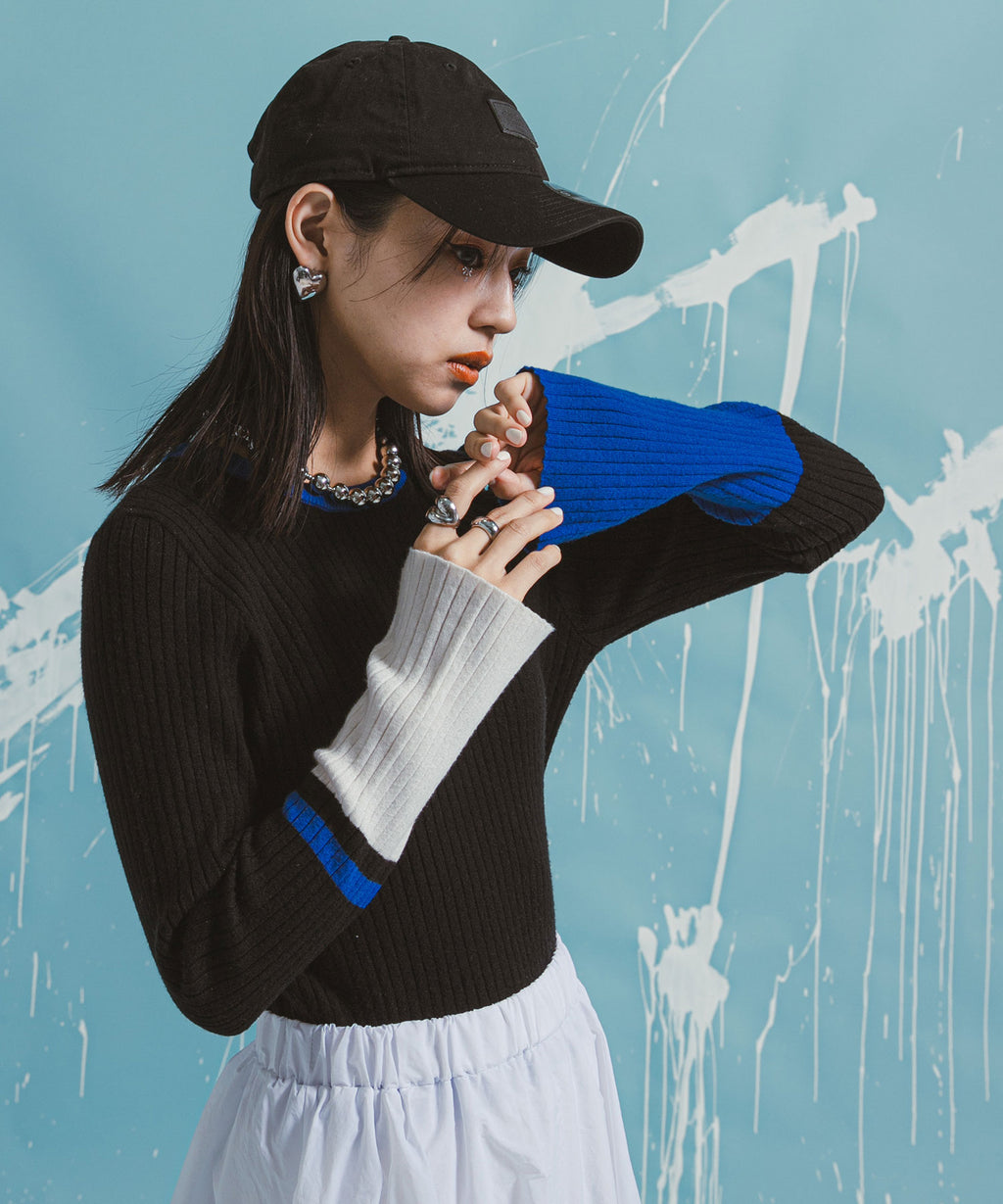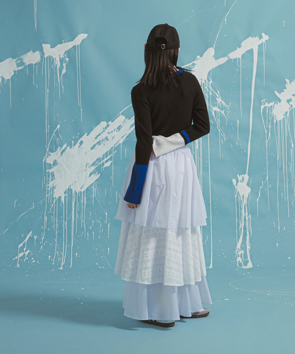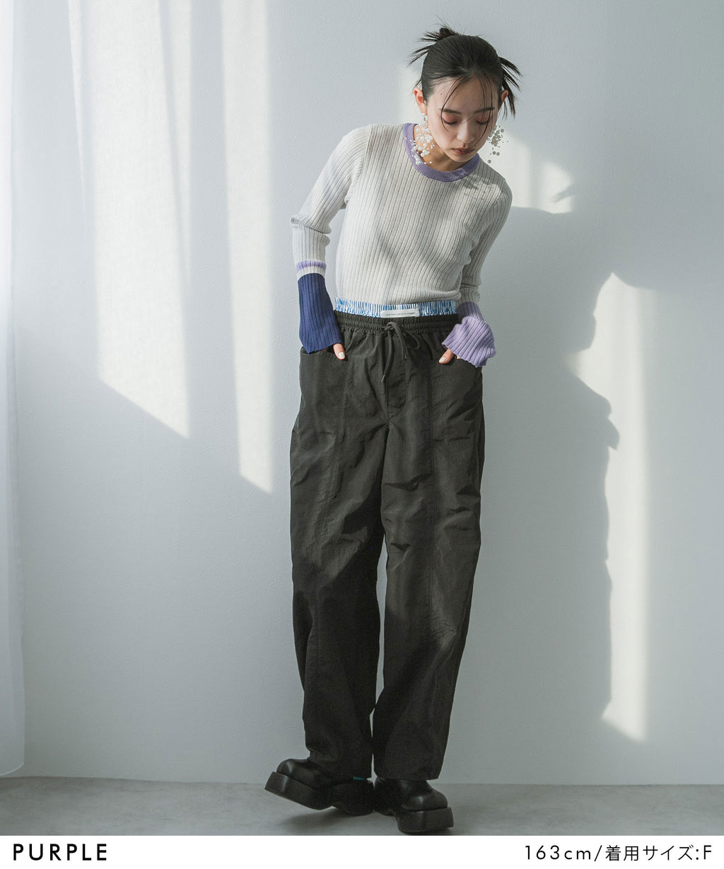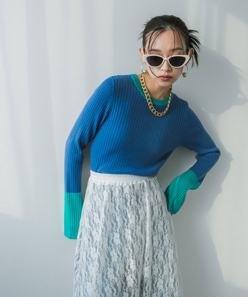首元、袖の配色を見せてレイヤリングを楽しむのも◎