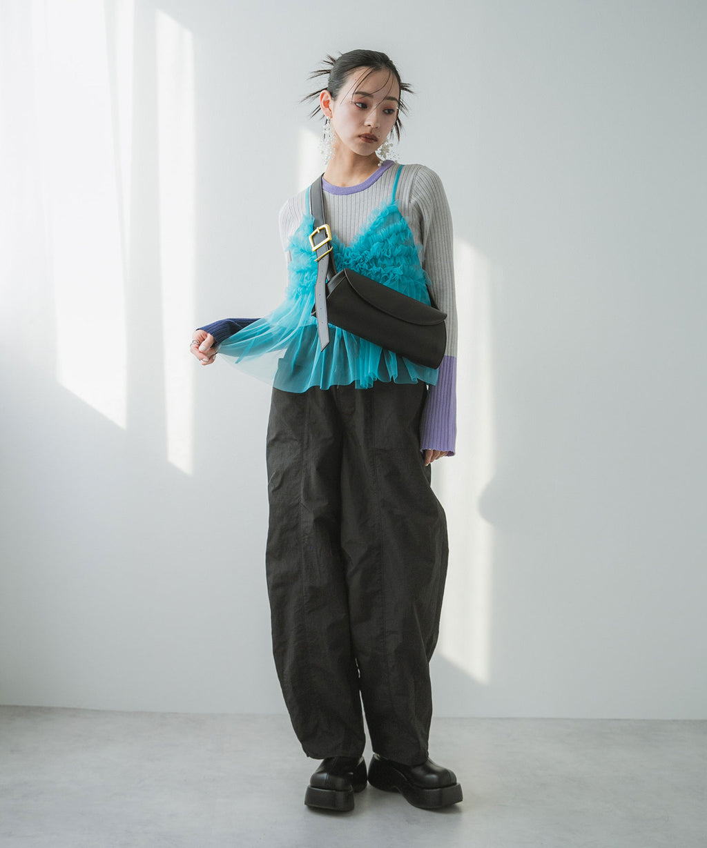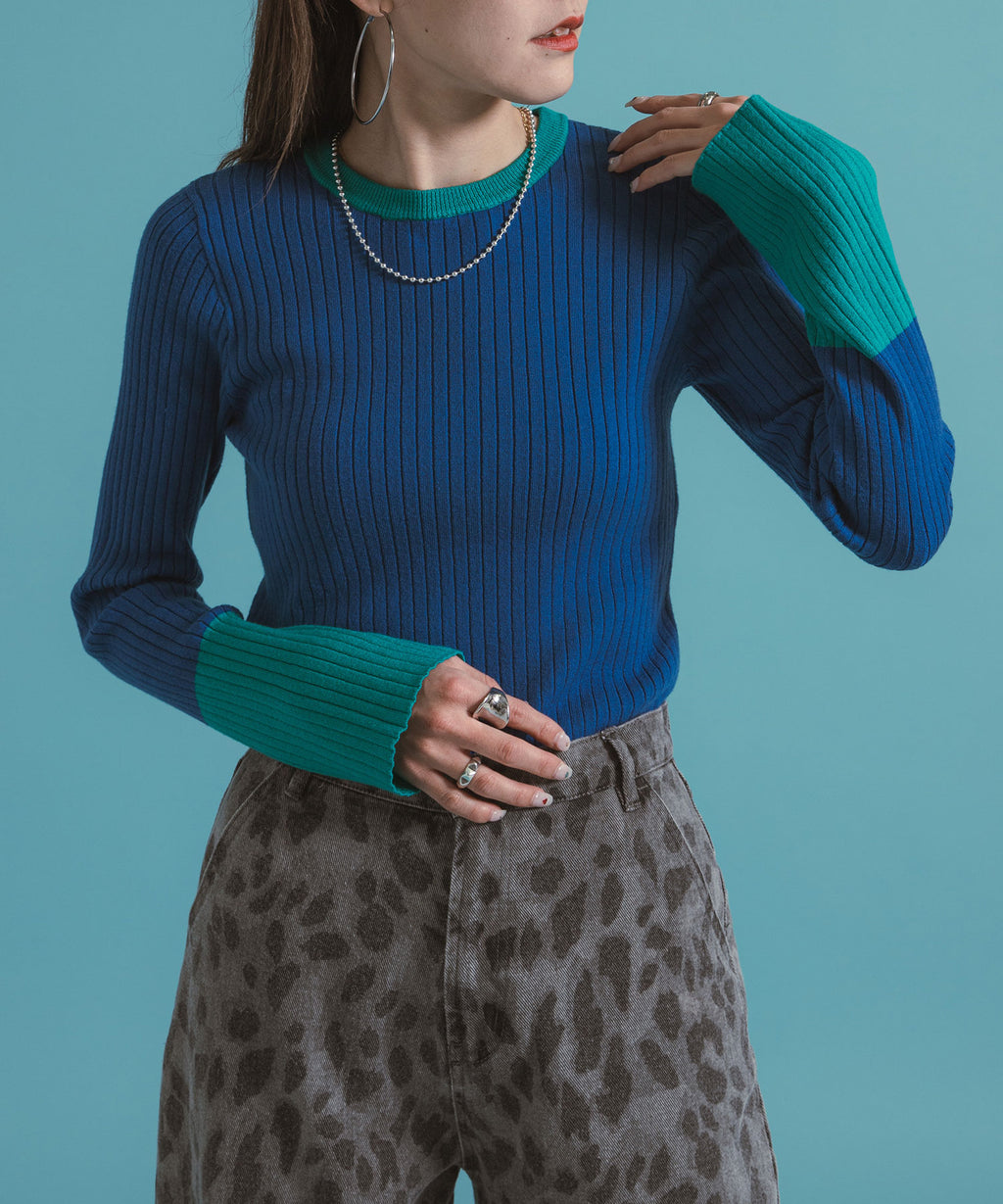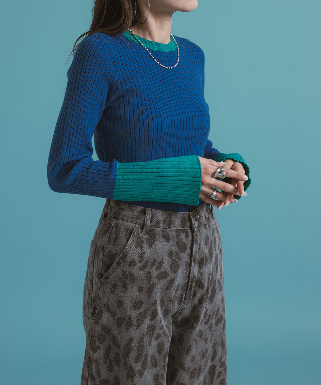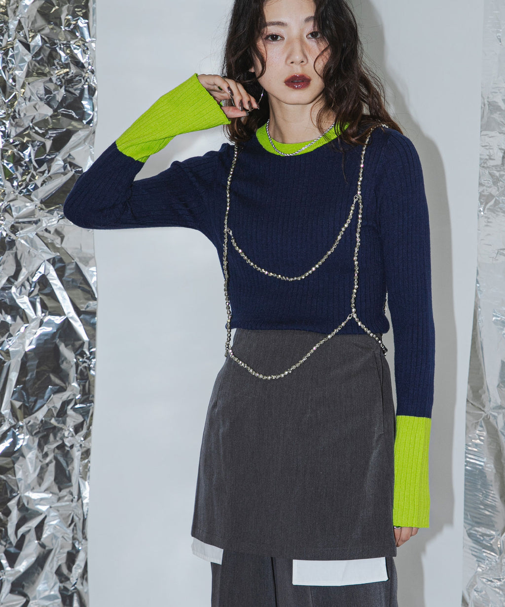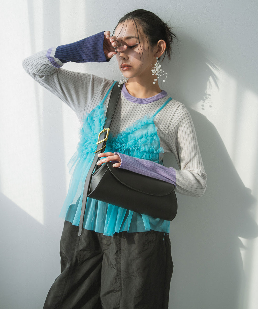 首元、袖の配色を見せてレイヤリングを楽しむのも◎