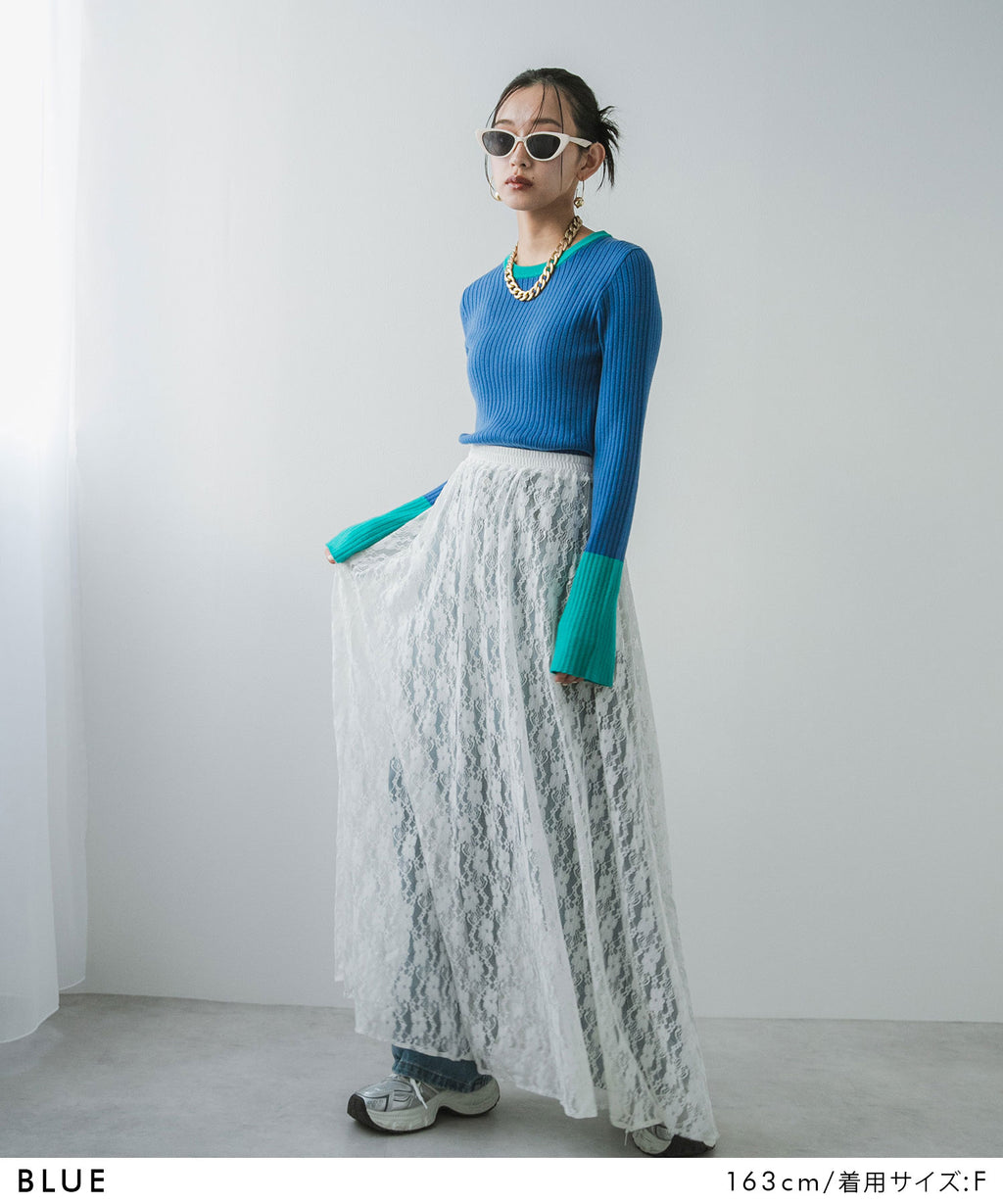 サロペットのインナーや、デニムに合わせても、もちろんスカートと合わせて大人っぽく着るのも○