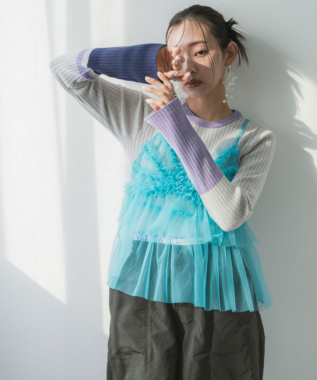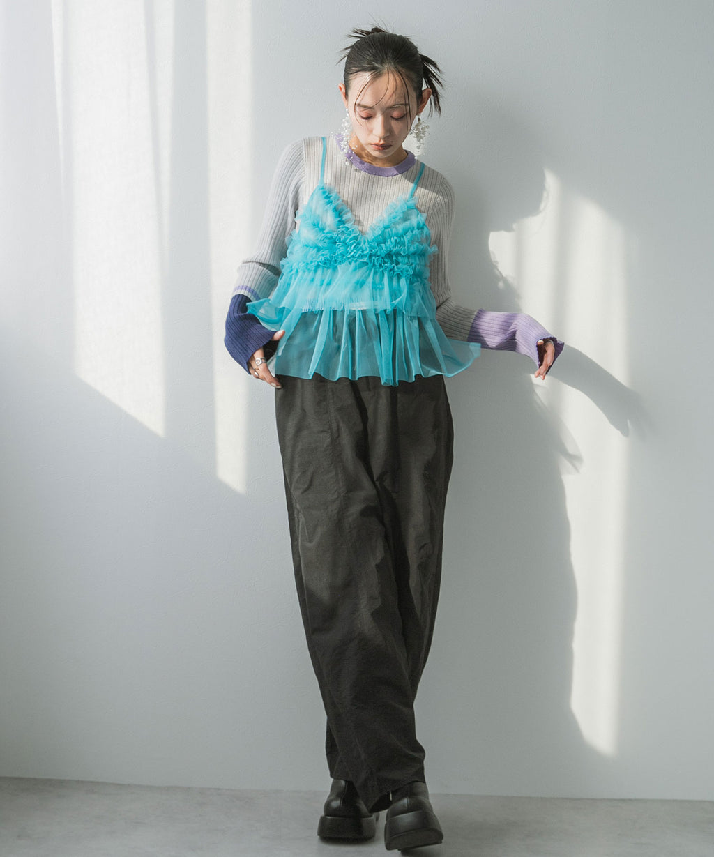 カーディガンやニットのインナーから、今年らしくシアーアイテムとのレイヤードも。