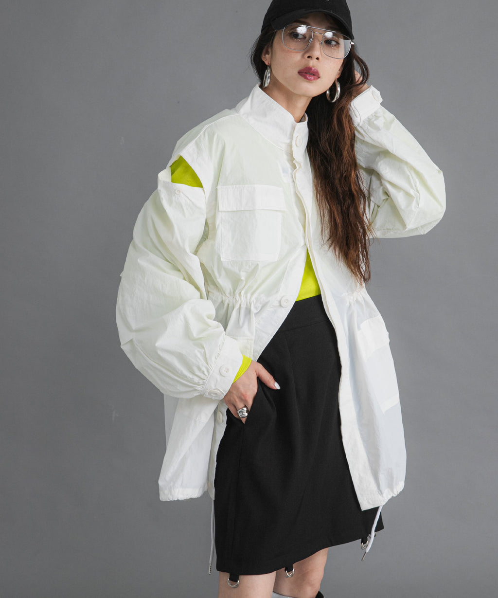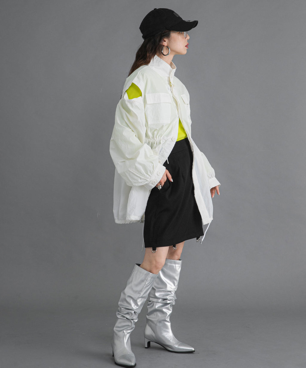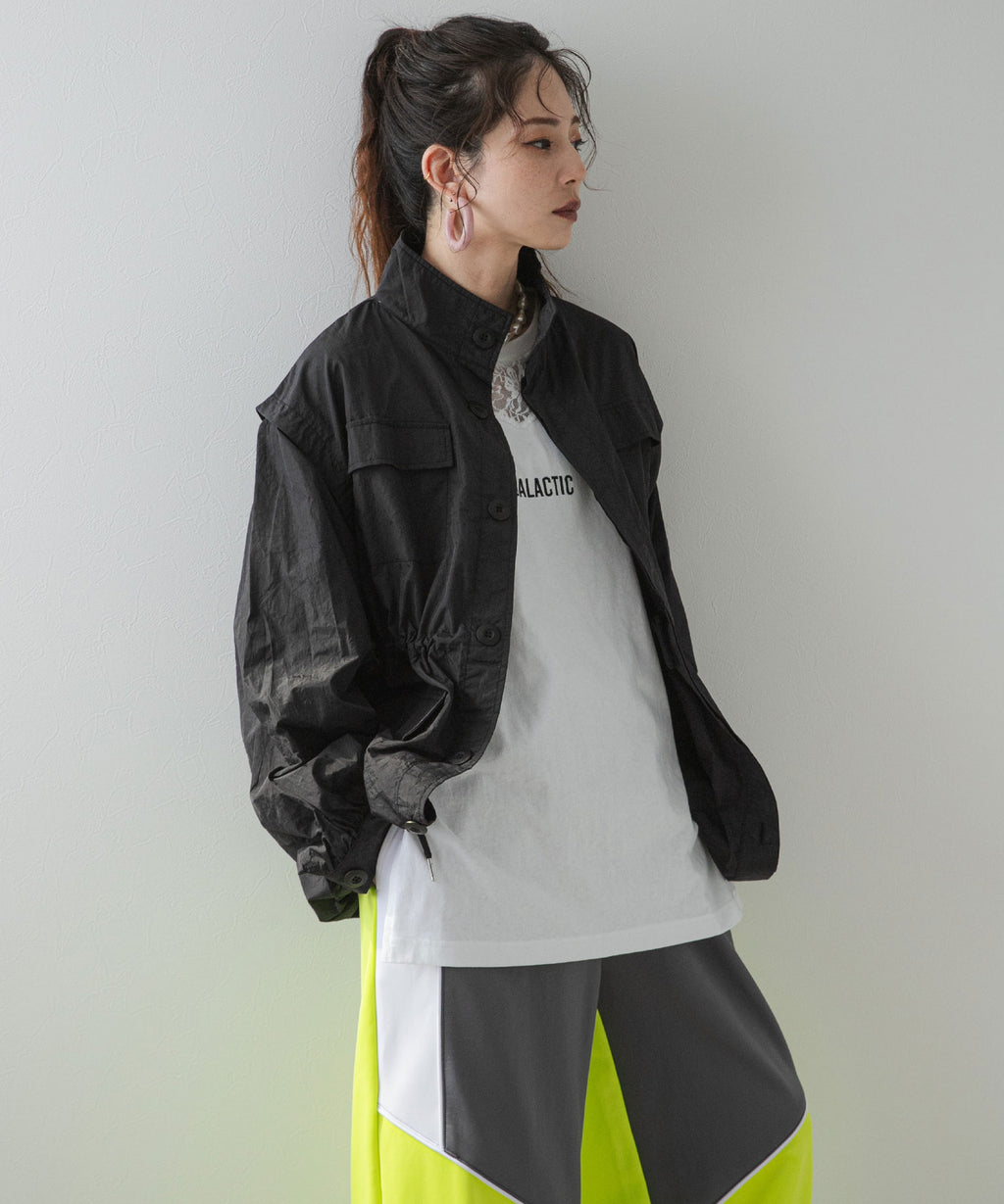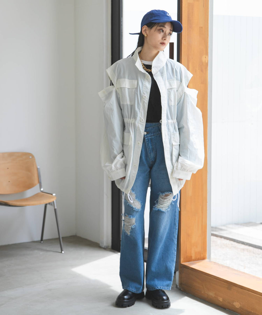 大きめシルエットですが、ウエスト、裾の絞りでスッキリとした着こなしも可能。