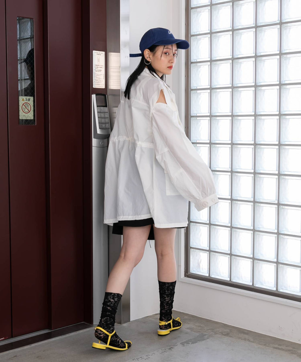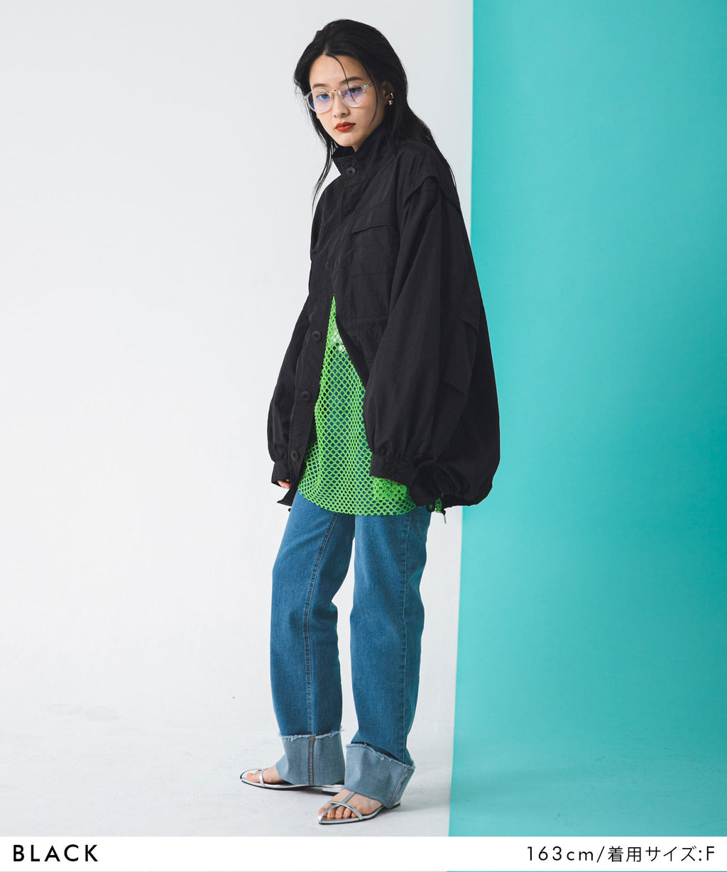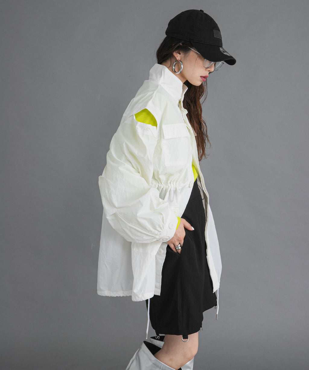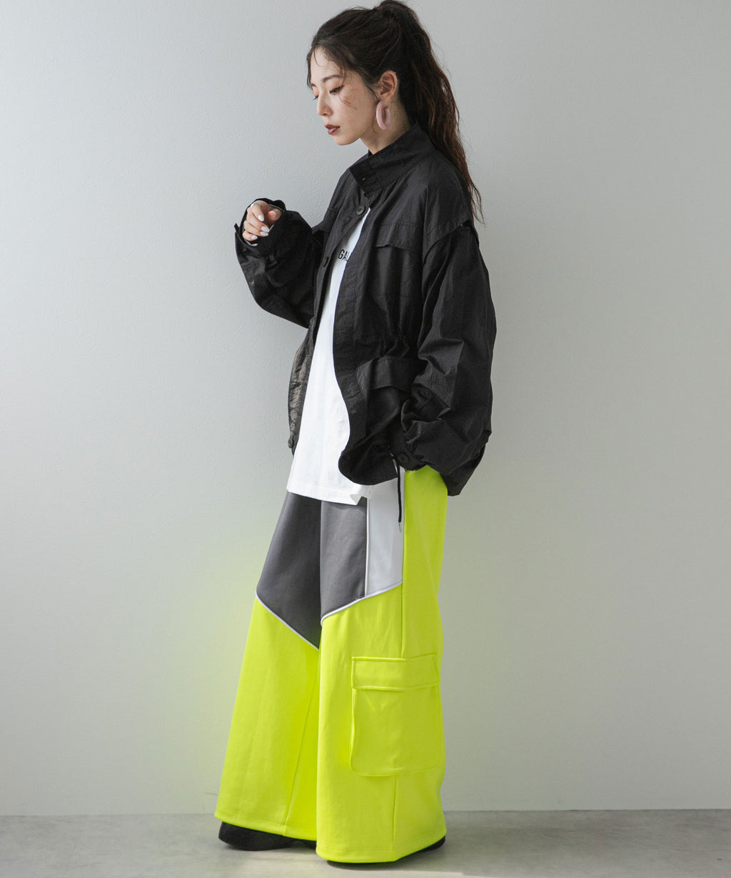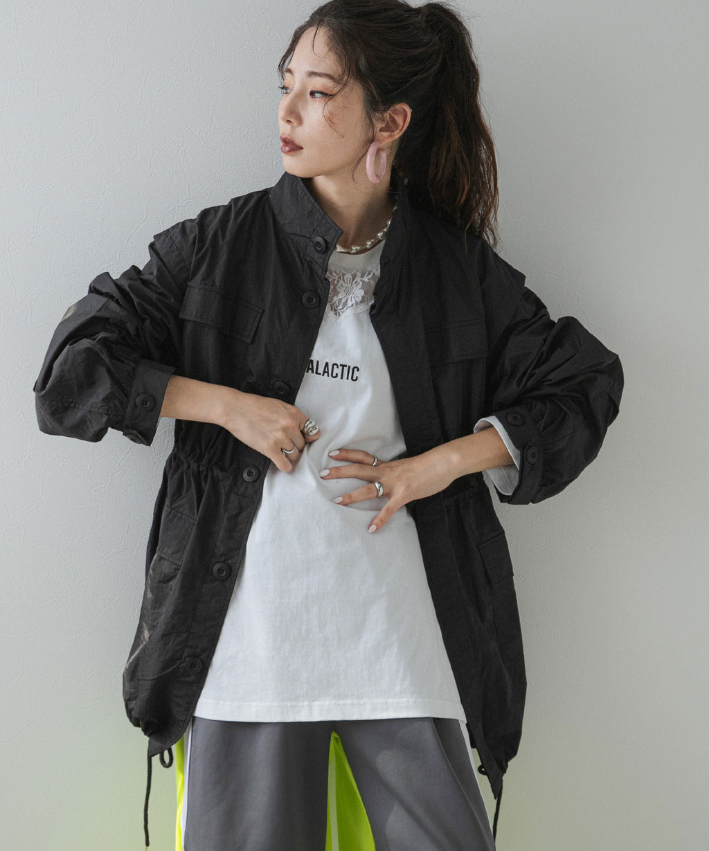 大きめシルエットですが、ウエスト、裾の絞りでスッキリとした着こなしも可能。