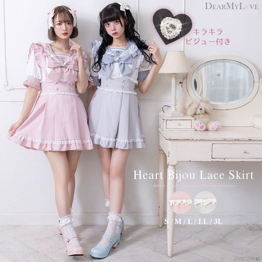キラキラハートビジューにレースたっぷりのサス付きスカート♪