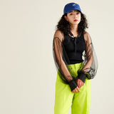 デニム、カラーパンツとタンクトップに合わせてカジュアルダウンや、