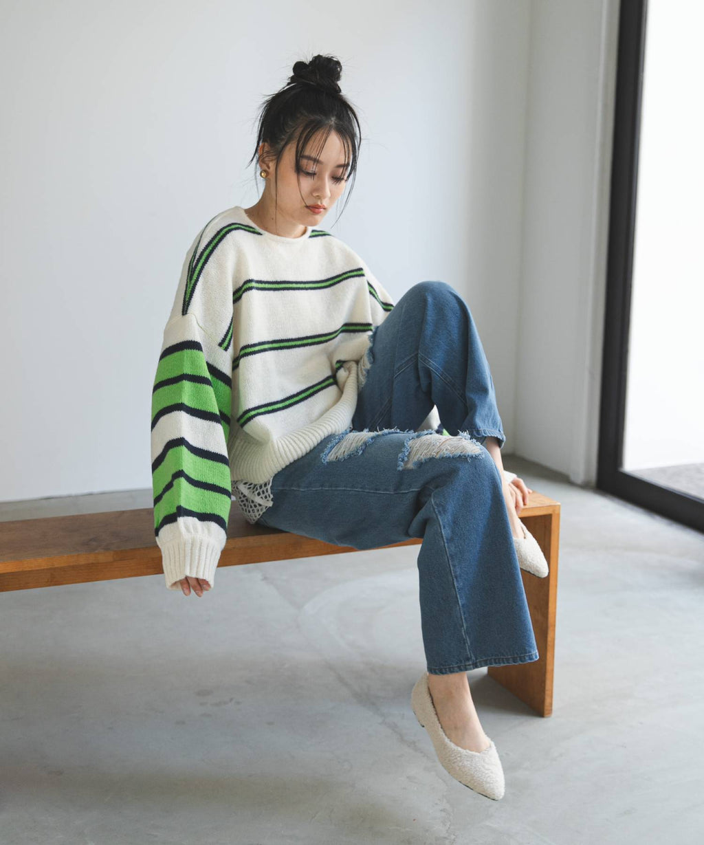 カラーアイテム カラーコーデ カラフルコーデ 大人カジュアル 大人カジュアルコーデ 大人カジュアルファッション 30代ファッション ママコーデ ママファッション リラックスカジュアル カジュアルコーデ 着回しコーデ ファーパンプス ポインテッドトゥ パンプス ローヒール