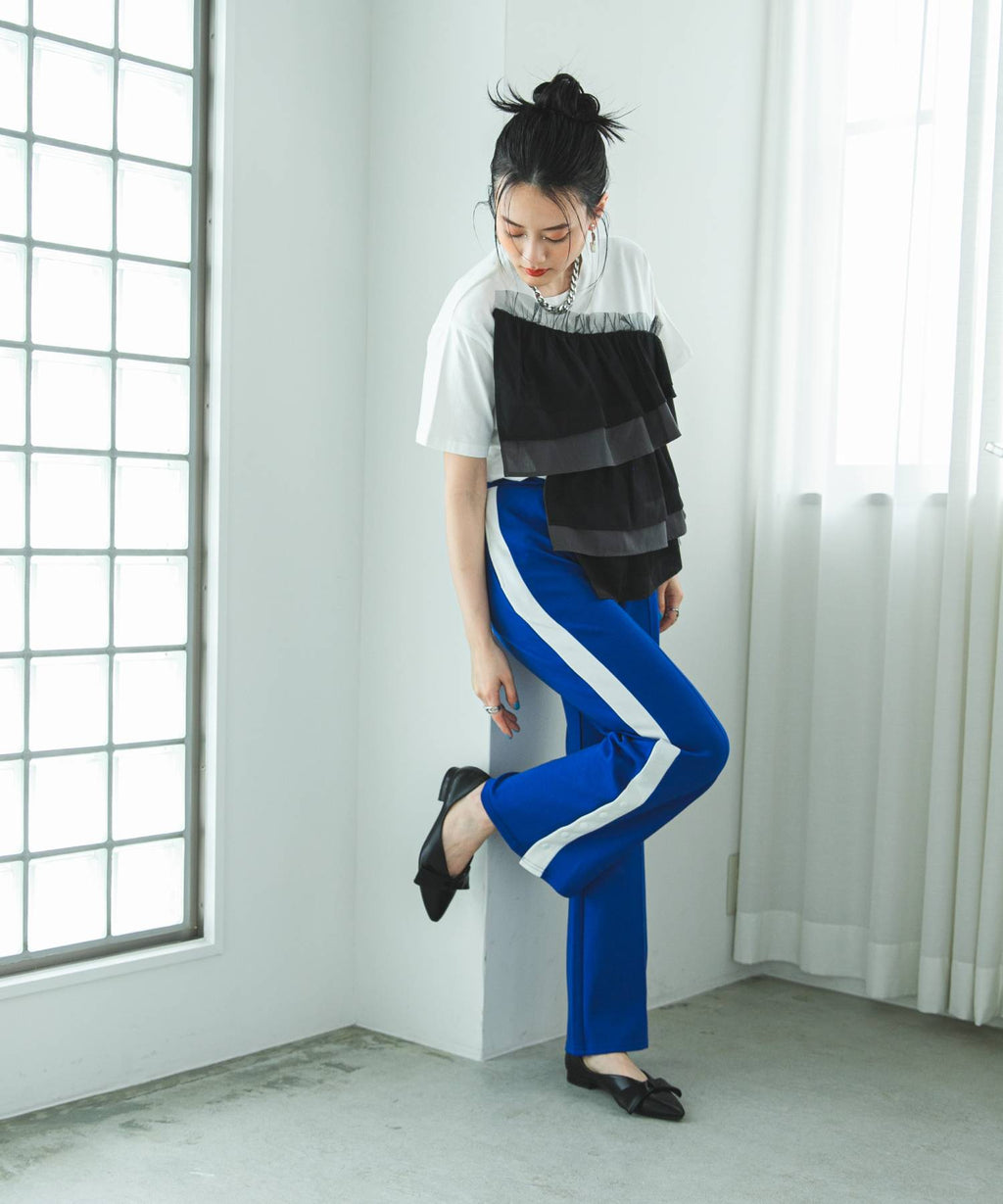 カラーアイテム カラーコーデ カラフルコーデ 大人カジュアル 大人カジュアルコーデ 大人カジュアルファッション 30代ファッション ママコーデ ママファッション リラックスカジュアル カジュアルコーデ 着回しコーデ パンプス ポインテッドトゥ リボンモチーフ ローヒール
