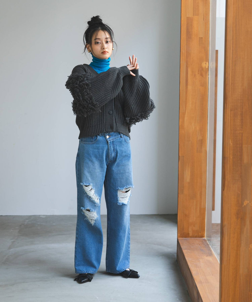 立体感のある大ぶりのリボンがコーディネートのアクセントになって、