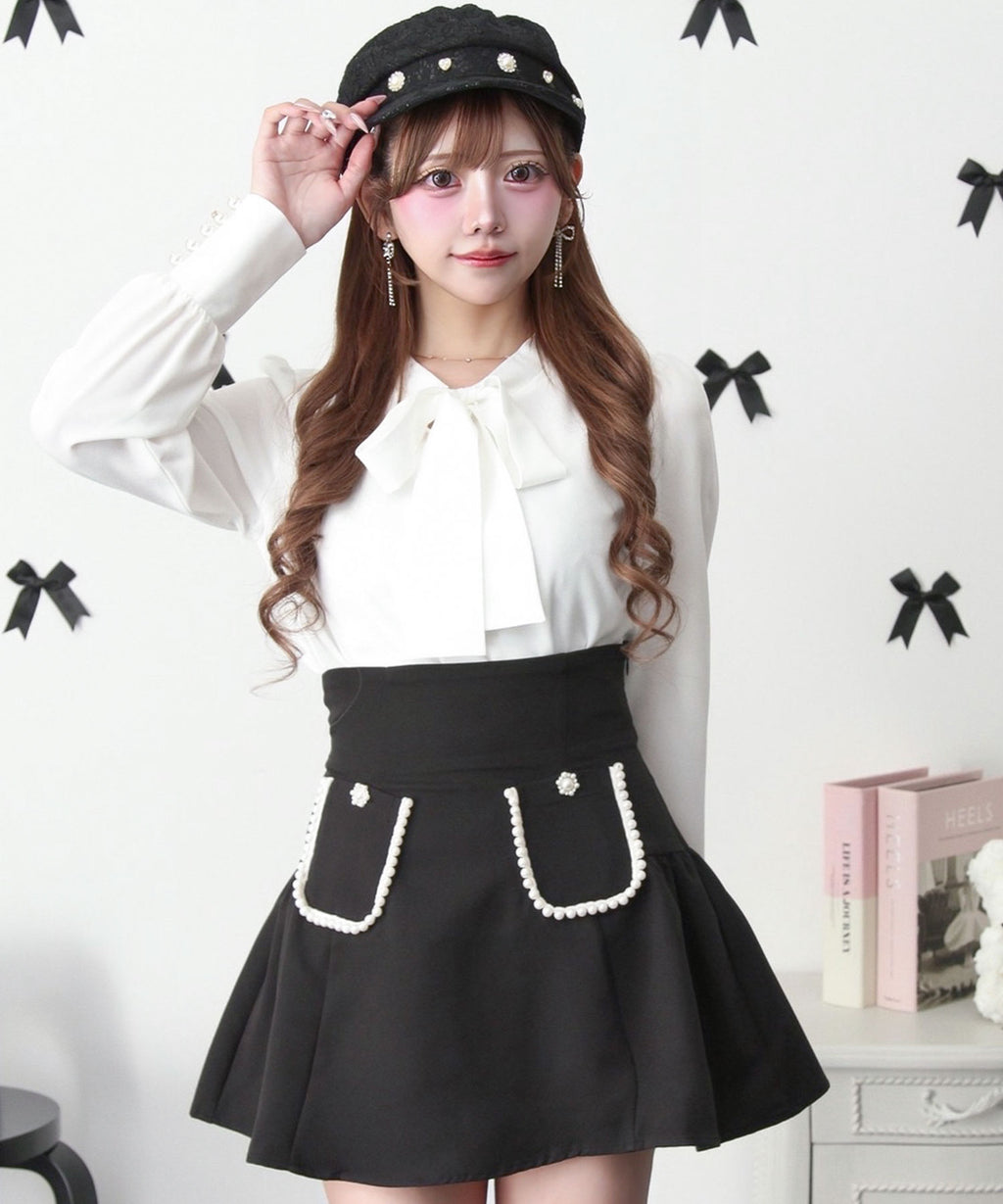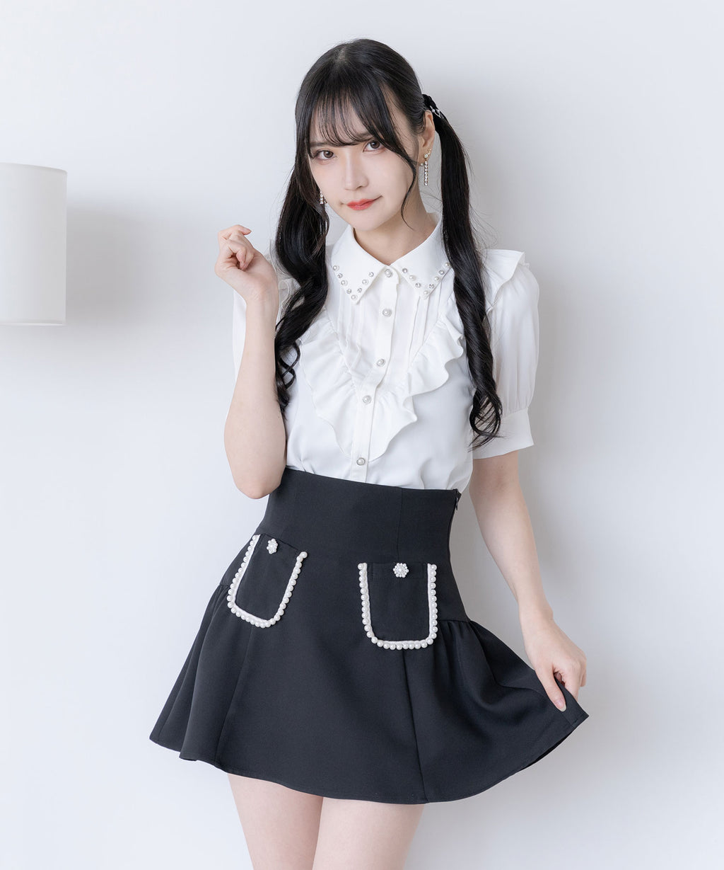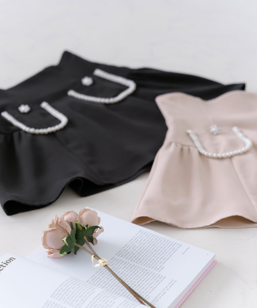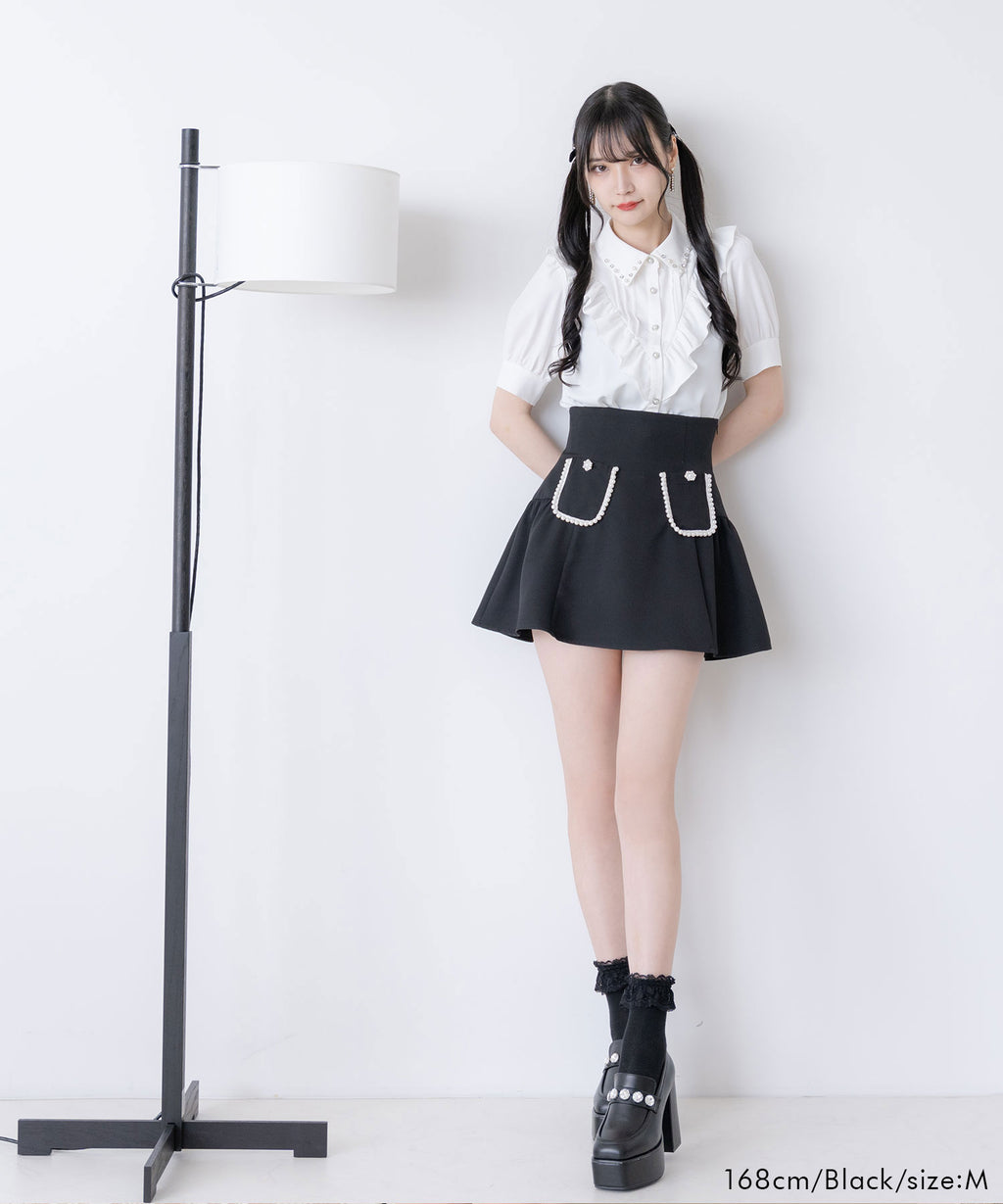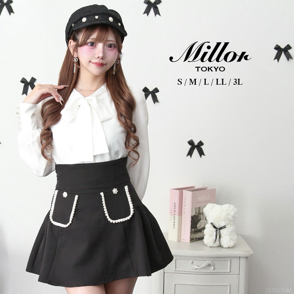 ふんわりと広がるシルエットが印象的なデザイン。ポケットの縁に施された華奢なファーと大粒なパールがとびきり可愛い至極のアイテム♪ウエストの切替部分をなくしハイウエストに仕上げたことで、履くだけでスタイルアップが叶うのもMillorならではのポイントです。色違いで持っておいても重宝していただけるカラー展開でご用意しています。