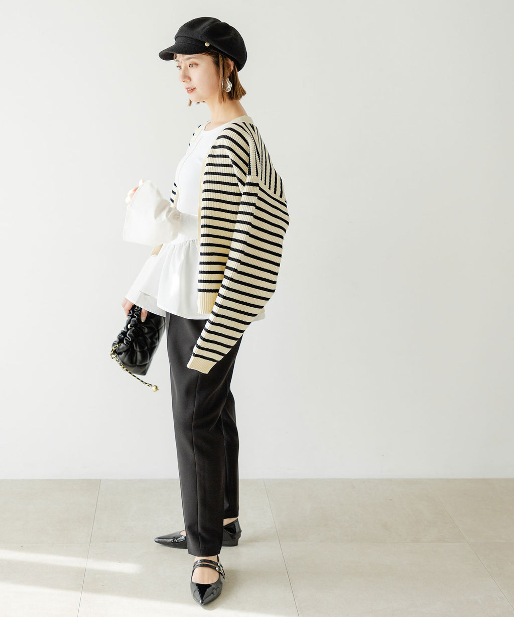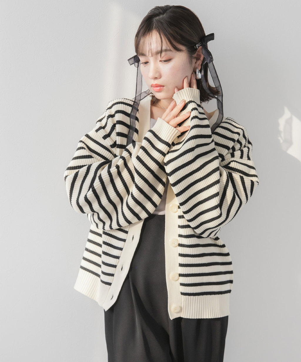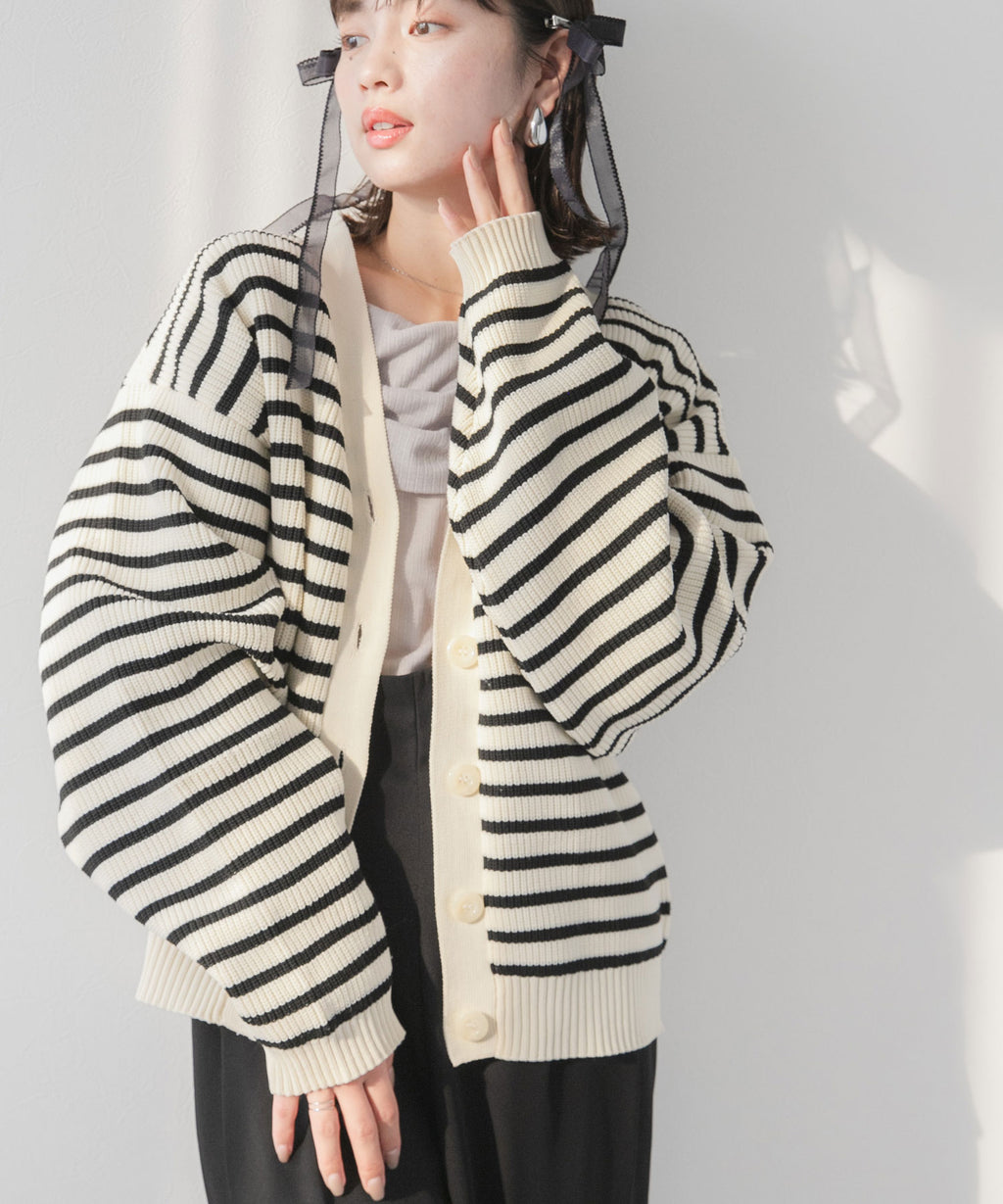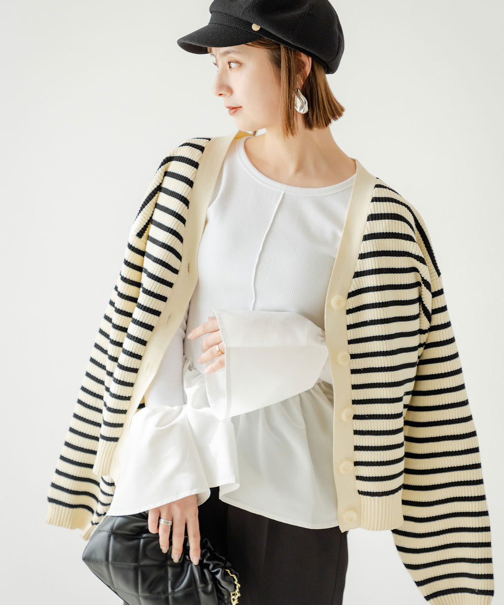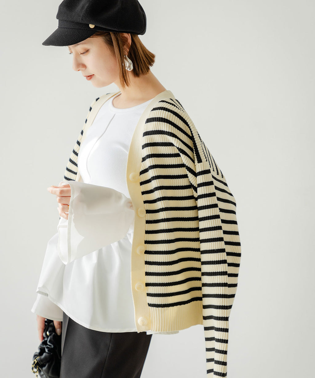 暖かみのあるアイボリーとブラックのボーダー柄は飽きの来ない定番アイテム。